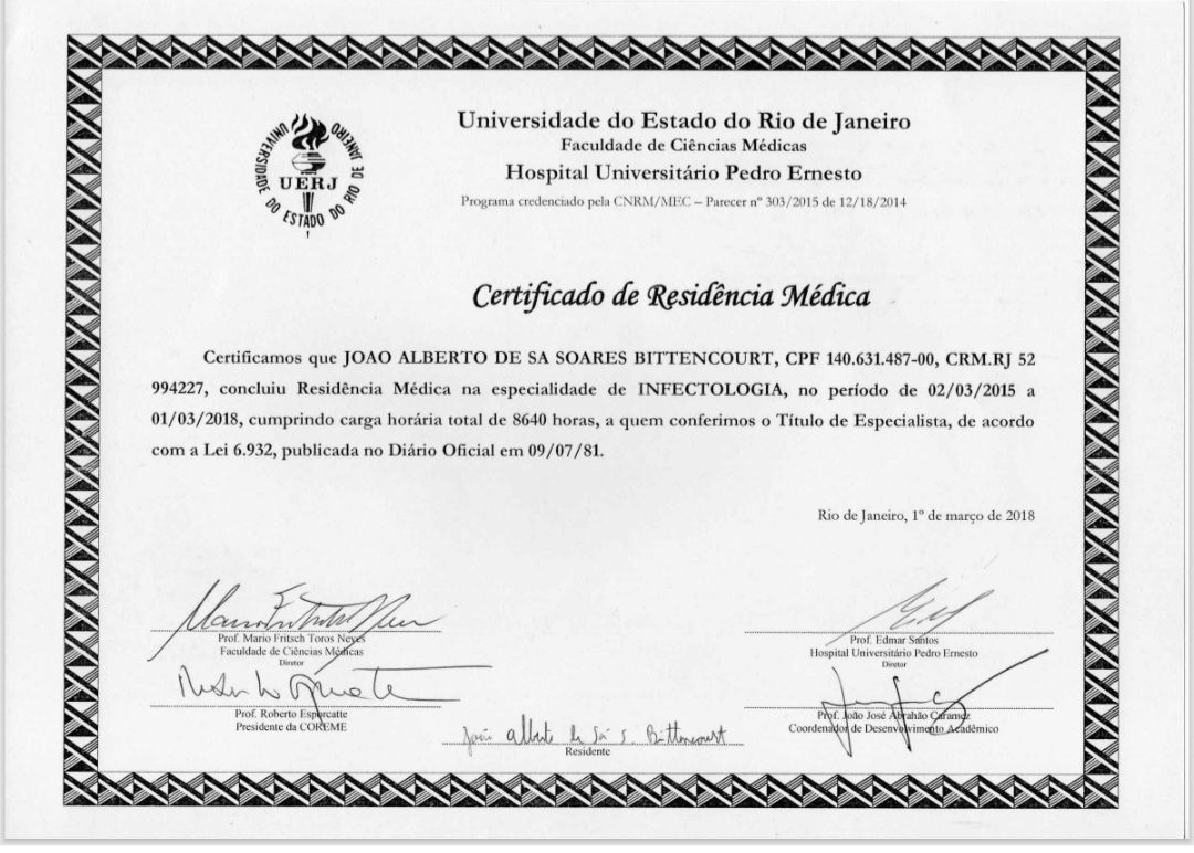 Quais são as principais especialidades de João Alberto de Sá Soares Bittencourt?João Alberto de Sá Soares Bittencourt é infectologista. Te mostramos alguns dos serviços oferecidos pelo especialista graças à sua trajetória e vasta experiência: Primeira consulta Infectologia.