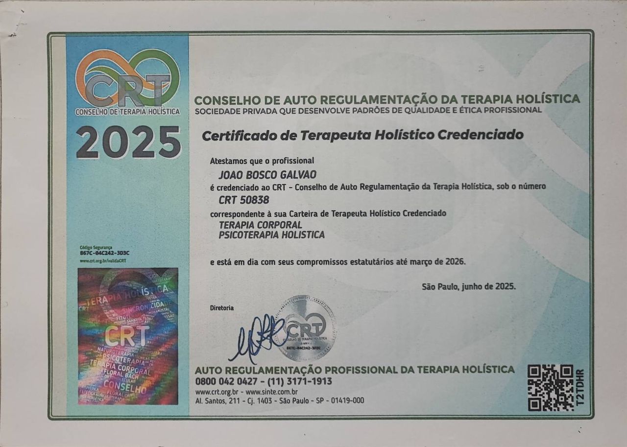 Quais são as principais especialidades de João Bosco Galvão?João Bosco Galvão é terapeuta complementar. Te mostramos alguns dos serviços oferecidos pelo especialista graças à sua trajetória e vasta experiência: Tratamento da ansiedade, Transtorno de déficit de atenção e hiperatividade - TDAH, Meditação, Tratamento da depressão, Psicoterapia adulto, Terapia de apoio para familiares de dependentes químicos, Terapia do renascimento, Terapia para dependência química, Psicoterapia, Terapia integrativa e complementar.