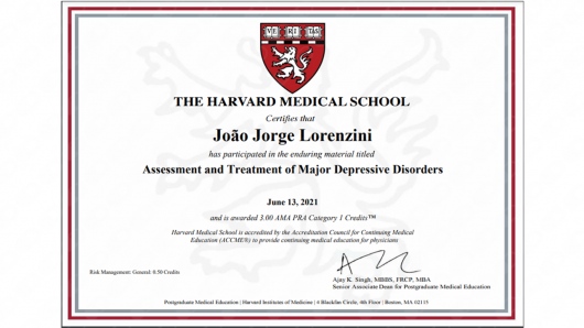 - Certificação em Transtorno Depressivo Resistente pela Harvard Medical School