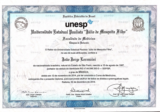 - Graduação em Medicina pela UNESP (Universidade Estadual Júlio Mesquita Filho)