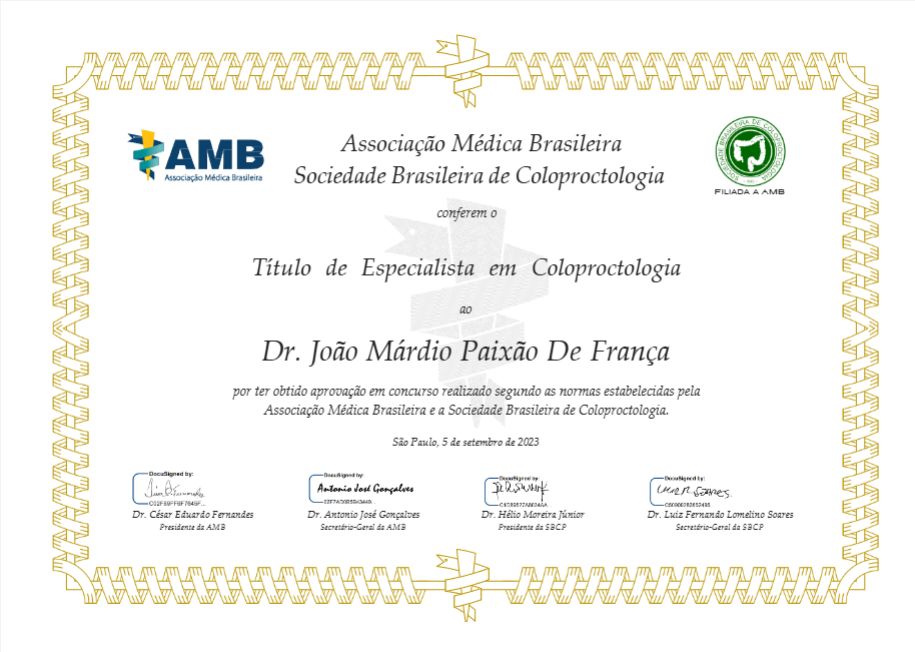 Olá! Sou médico especialista em Coloproctologia, com Título de Especialista conferido pela Sociedade Brasileira de Coloproctologia (SBPC) e pela Associação Médica Brasileira (AMB), o que representa o mais alto grau de qualificação na minha área. Minha jornada na medicina é marcada por um duplo compromisso: a excelência técnica e o cuidado verdadeiramente centrado no paciente.