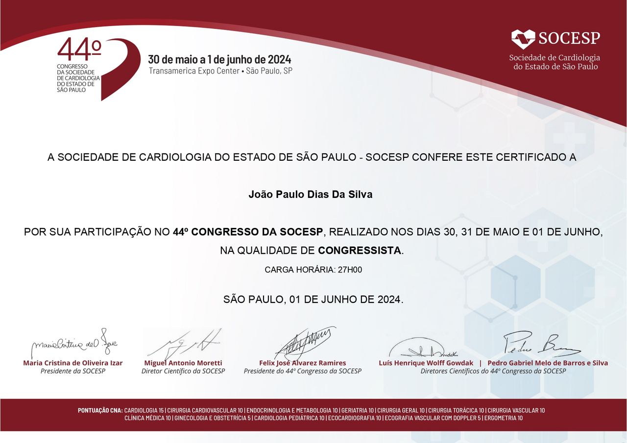 Quando poderia me consultar com João Paulo Dias?João Paulo Dias costuma ter horários disponíveis dentro da mesma semana ou para a semana seguinte. Verifique o calendário: você verá o primeiro horário disponível, atualizado em tempo real. Caso o horário sugerido não funcione para você, verifique outras datas. Agendar uma consulta é sempre imediato e gratuito.