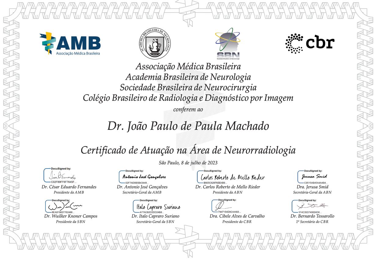 Atuação especializada em procedimentos de alta complexidade e minimamente invasivos em AVC, aneurisma cerebral, estenose carotídea e vertebral, hipertensão intracraniana idiopática, tinnitus pulsátil, fístula arteriovenosa, malformação arteriovenosa cerebral, hematoma subdural.