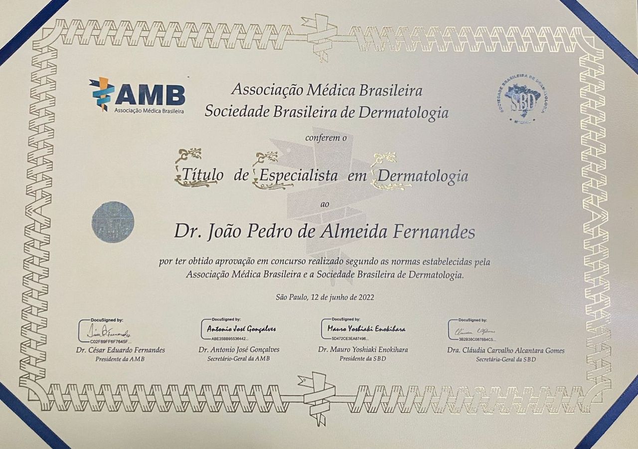 Quais são as principais especialidades de João Pedro de Almeida Fernandes?João Pedro de Almeida Fernandes é dermatologista. Te mostramos alguns dos serviços oferecidos pelo especialista graças à sua trajetória e vasta experiência: Consulta Dermatologia, Aplicação de Bioestimulador de colágeno (Sculptra ou Radiesse), Aplicação da toxina botulínica, Crioterapia.