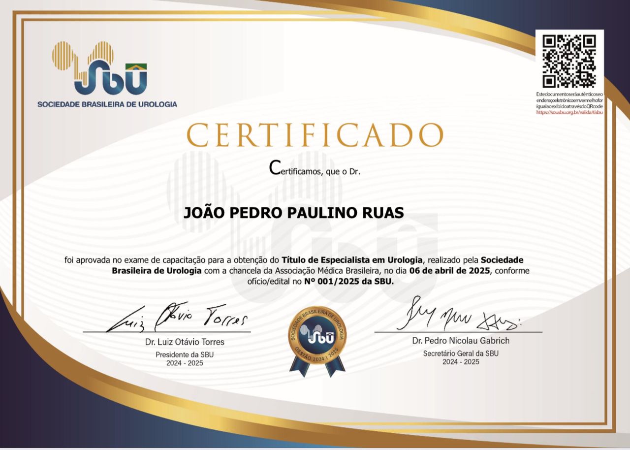 Super recomendo!• Dr. João Pedro Paulino Ruas - Urologia Clínica, Cirurgia Robótica e Minimamente Invasiva • Teleconsulta •