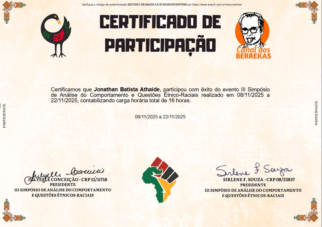 Olá, seja bem-vindo(a). Sou Jonathan, psicólogo formado pela Universidade do Estado de Minas Gerais (UEMG) e atualmente pós-graduando em Análise do Comportamento Aplicada (ABA).