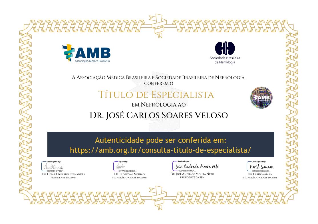 Um de seus diferenciais, que merece destaque, é ser detentor do Título de Especialista em Nefrologia emitido pela Sociedade Brasileira de Nefrologia em parceria com a Associação Médica Brasileira.
