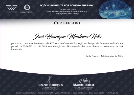 Além disso também tenho formação em terapia do esquema, que é mais indicada para transtornos de personalidade.