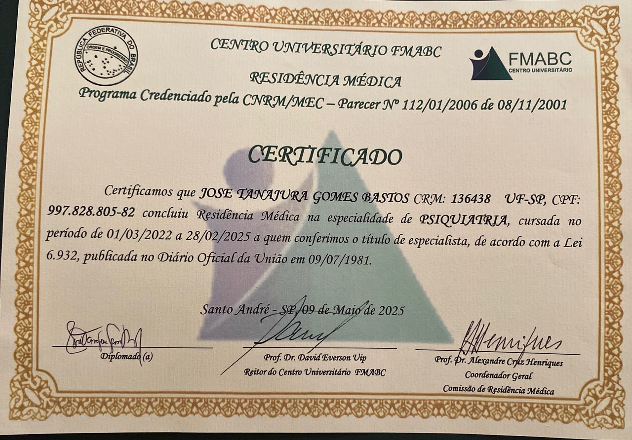 Sou médico psiquiatra com título de especialista. Tenho experiência em neurologia e clínica médica. Há 20 anos cuidando de pessoas em suas singularidades