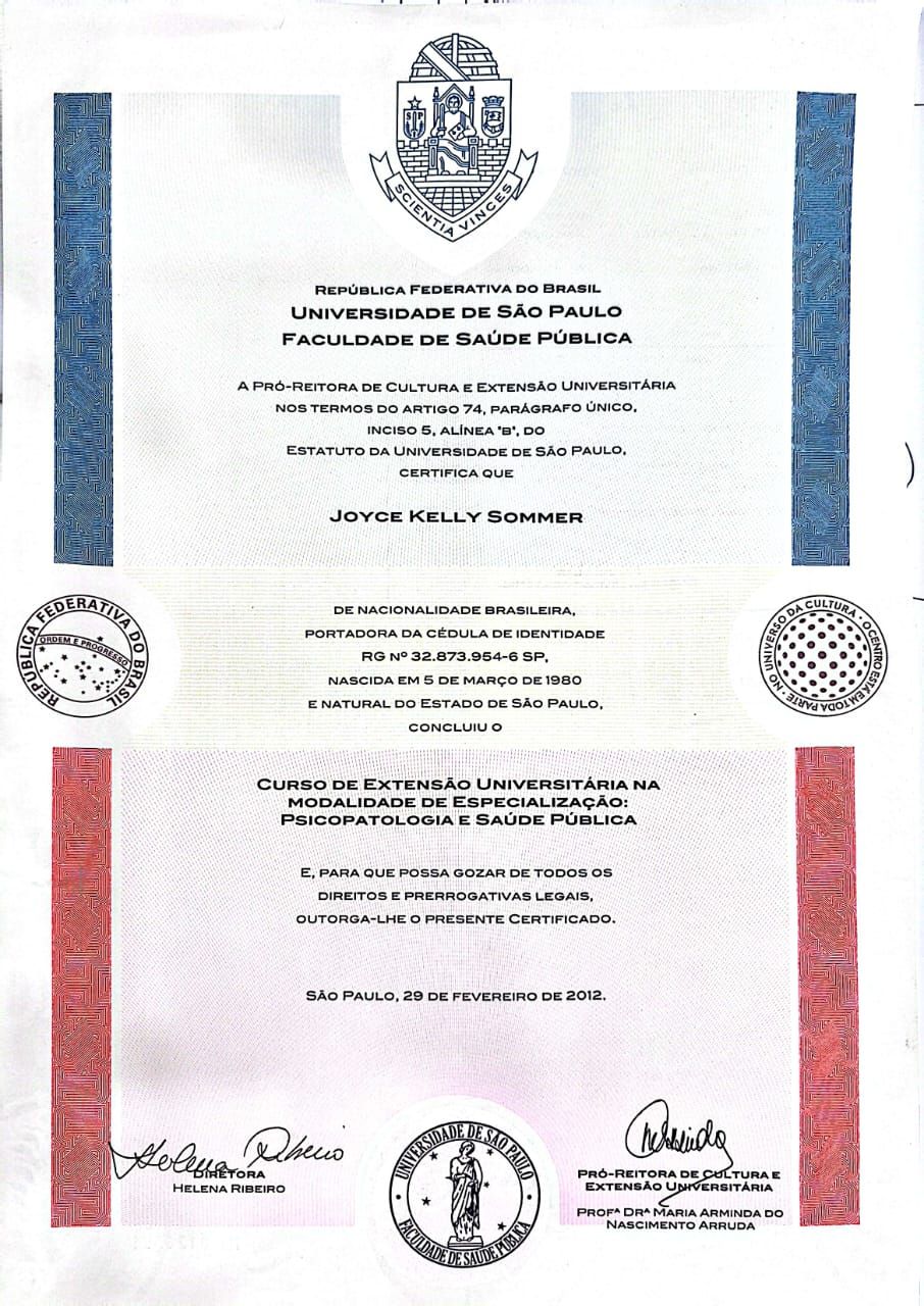 Quais são as principais especialidades de Joyce kelly Sommer?Joyce kelly Sommer é psicóloga, psicanalista. Te mostramos alguns dos serviços oferecidos pelo especialista graças à sua trajetória e vasta experiência: Teleconsulta, Atendimento Psicológico online para adulto, Psicoterapia online, Terapia online, Primeira consulta psicanálise, Consulta de psicologia online, Tratamento do transtorno de estresse pós-traumático, Tratamento da síndrome do pânico, Tratamento da ansiedade, Tratamento da depressão.