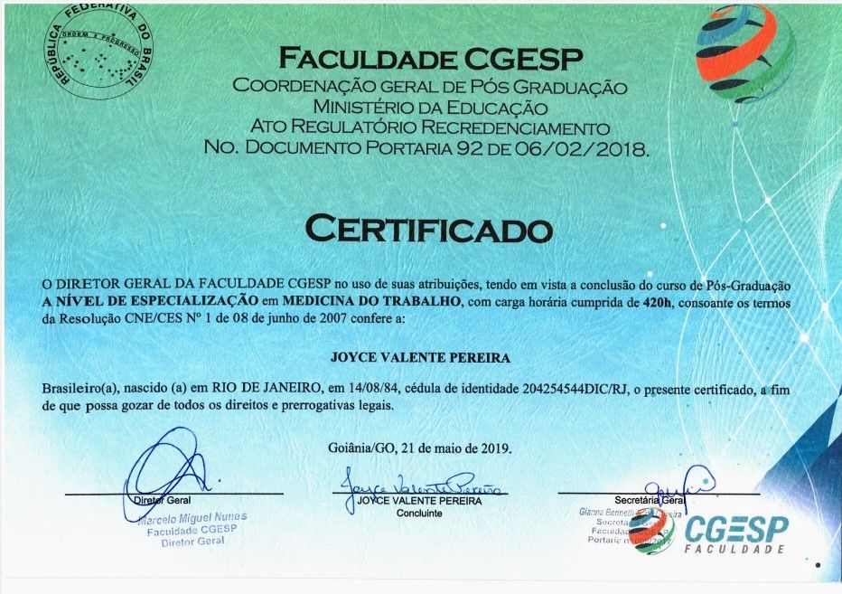 Quais são as principais especialidades de Joyce Valente?Joyce Valente é médica clínica geral, psiquiatra, médica do trabalho. Te mostramos alguns dos serviços oferecidos pelo especialista graças à sua trajetória e vasta experiência: Teleconsulta, Consulta de Pronto Atendimento, Consulta clínico geral, Consulta Psiquiatria, Programa de controle médico de saúde ocupacional (PCMSO), Saúde mental (mental health), Tratamento da ansiedade, Tratamento da depressão, Tratamento da insônia, Tratamento da síndrome do pânico.