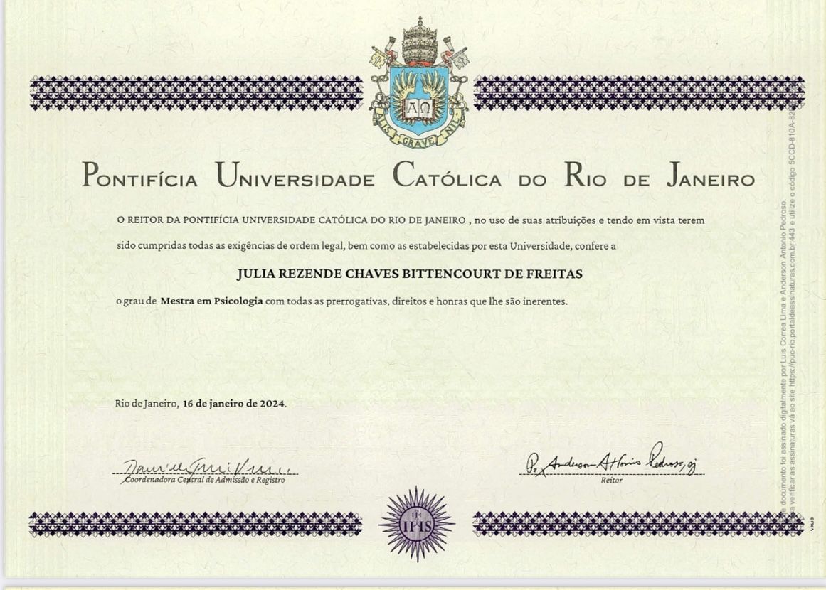 Dra. Julia é mestre em Psicologia, especialista em Desenvolvimento Infantil, em Psicopedagogia, em Psicologia Perinatal e Parental e em Terapia de Família. Também tem formação em Prática Psicomotora Aucouturier e em Neurociência do Comportamento da Criança. Já trabalhou no Colégio Garriga de Menezes e nas creches Studio da Criança e Guga, além de se dedicar ao atendimento clínico a crianças, mães, pais e casais há mais de 10 anos.