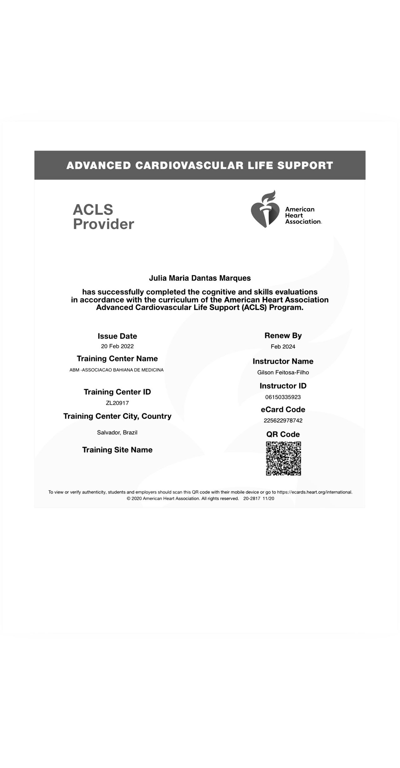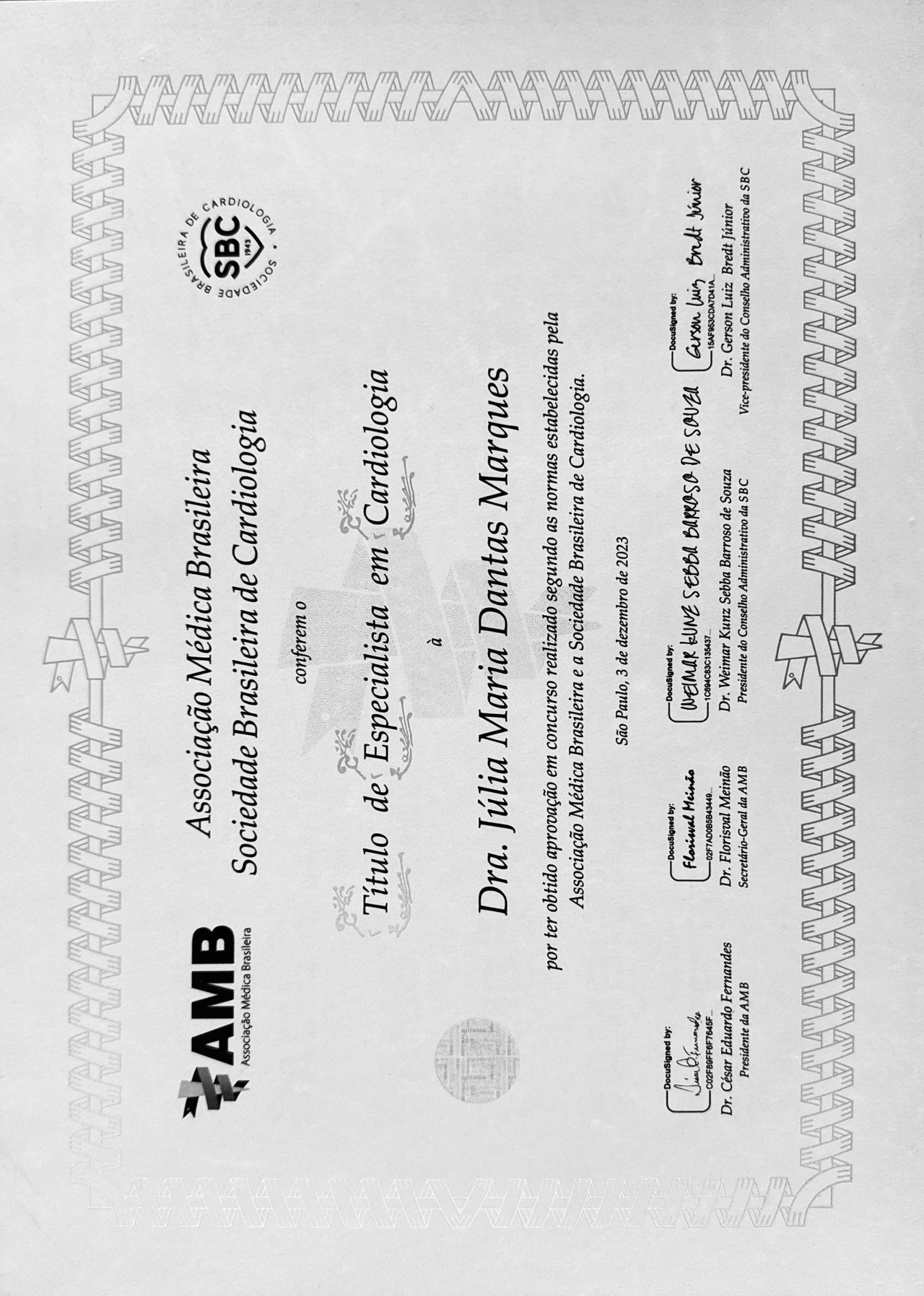 Título de especialista em cardiologia pela Sociedade Brasileira de Cardiologia