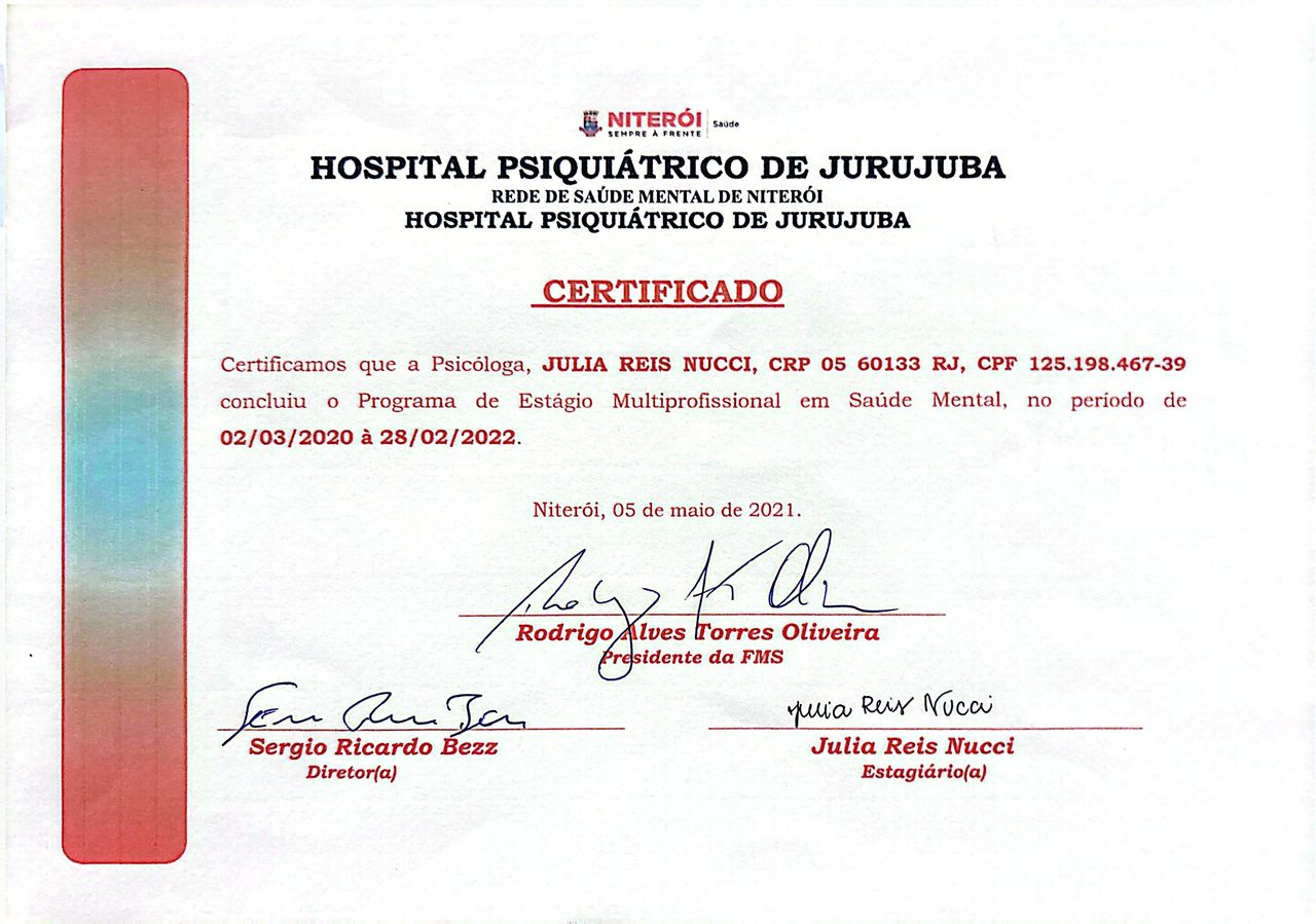 Já fui também psicóloga do Caps Infanto Juvenil João de Barro, em Campo Grande (AP 5.2) e passei por outros serviços da rede pública de Niterói como Ambulatório de Jurujuba; Emergência psiquiátrica do Hospital Psiquiátrico de Jurujuba; Caps Álcool e Drogas Alameda; Caps Infanto Juvenil Monteiro Lobato; Caps Casa do Largo e Centro de Convivência e Cultura.