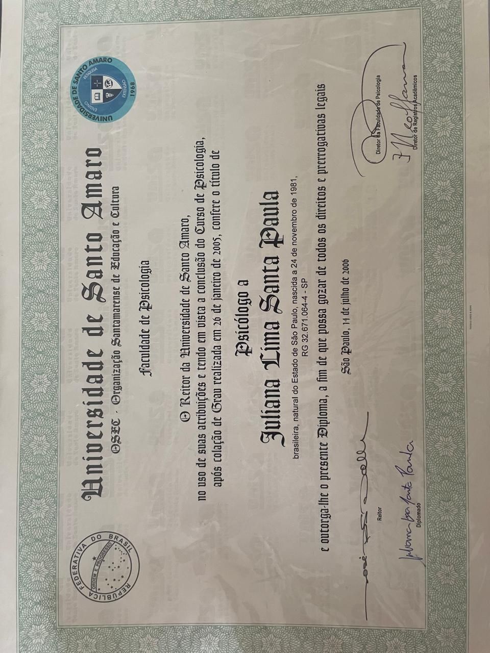 Recomendo fortemente o trabalho da Dra. Juliana a todos que buscam autoconhecimento, equilíbrio emocional e crescimento pessoal.• Juliana Lima | Psicóloga Atendimento Presencial (CLINOVI) • Psicoterapia •
