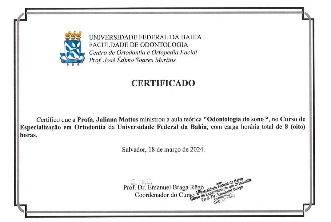 São doze anos atuando de forma exclusiva e contínua com aparelhos odontológicos em consultório particular. Na constante busca da excelência e de trazer para seu consultório e alunos o melhor conhecimento e técnicas ingressou no Doutorado da Universidade Federal da Bahia. Possui grande experiência em tratamento para crianças e adultos com aparelhos convencionais, estéticos, como o Invisaling e ortopédicos para movimentação de dentes e ossos da face. Também atua no tratamento orto-cirúrgico de pacientes com grandes deformidades dentoalveolares e faciais. Possui o selo Top Doctor da Align Tecnology (EUA) por fazer parte de um seleto grupo de doutores que mais tratam com Invisalign do Brasil. Atualmente é professora de Pós-graduação em Ortodontia e está sempre presente em congressos e encontros científicos. Dentista graduada pela Universidade Federal da Bahia (UFBA), que integra a lista das melhores instituições de ensino superior do Brasil de acordo com o Ministério da Educação. Na graduação apresentou trabalhos em congressos e recebeu bolsa CNPq (Conselho Nacional de Desenvolvimento Científico e Tecnológico) para suas pesquisas. Parte da graduação foi realizada na Universidad de Santiago de Compostela (USC), Galícia - Espanha, onde teve a oportunidade de cursar a matéria Ortodoncia. A USC é uma Universidade pública, sendo uma das mais antigas do mundo e possui o selo de excelência. Especialista e Mestre em Ortodontia e Ortopedia Facial pela Pontifícia Universidade Católica de Minas Gerais (PUC), uma das instituições mais tradicionais e reconhecidas do Brasil na área de Ortodontia. O curso de Mestrado da PUC obteve a nota máxima conferida no CAPES (Coordenação de Aperfeiçoamento de Pessoal de Nível Superior). Parte de sua dissertação do mestrado foi realizada na Case Western Reserve University School of Dental Medicine (CWRU), Cleveland, Ohio – Estados Unidos. Pós-graduada em Odontologia do Sono pelo Instituto do Sono, Universidade Federal de São Paulo (UNIFESP). A UNIFESP é referência nacional em estudos dos distúrbios respiratórios do sono e o Instituto do sono é considerado o maior centro de pesquisa de Sono no mundo. Atualmente é membro da Associação Brasileira do Sono. No tratamento dos distúrbios respiratórios do sono trabalha com aparelhos intra-orais e com planejamento Ortodôntico-cirúrgico para tratamento do ronco e apneia. Atendimento na cidade de Salvador e Feira de Santana