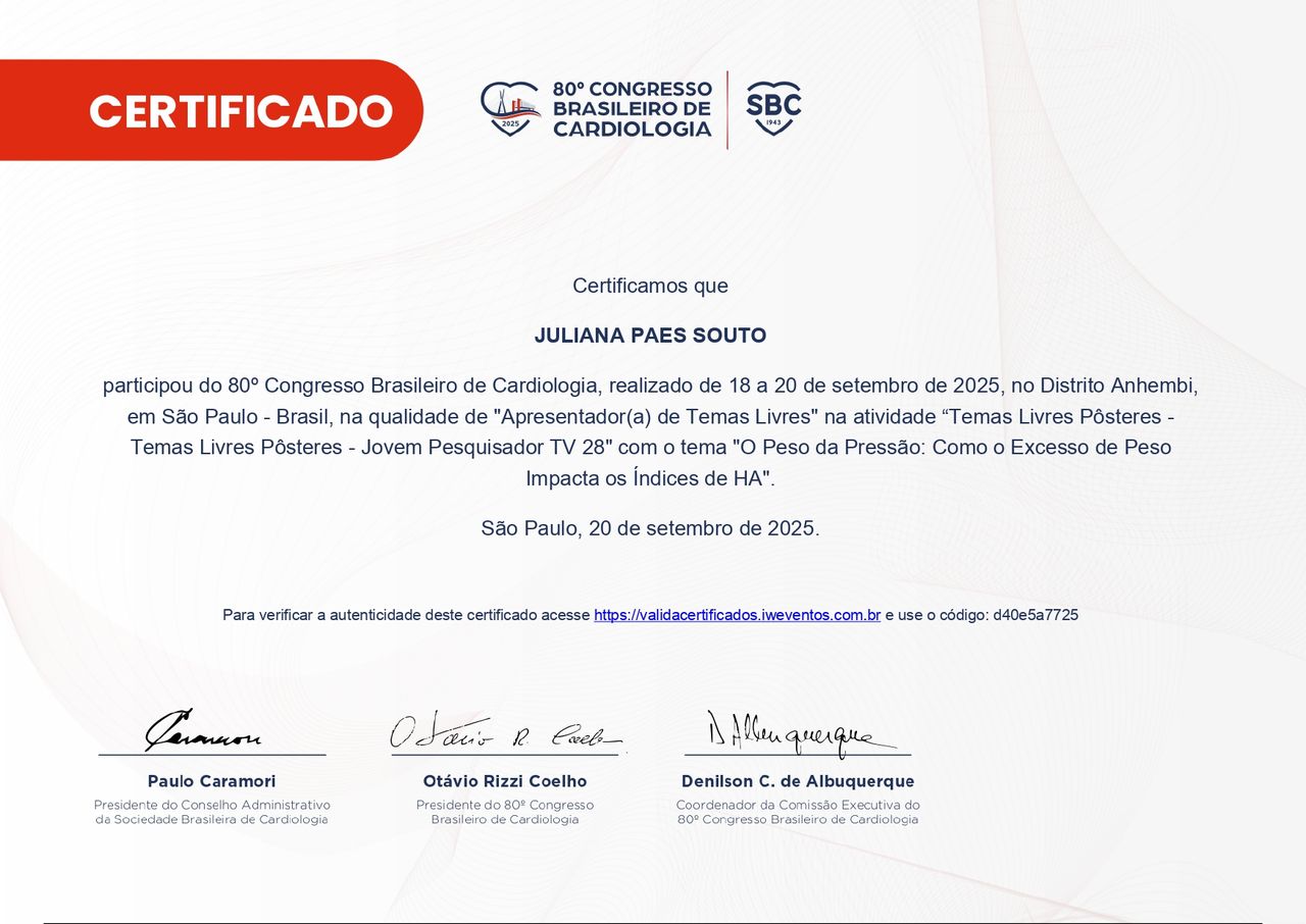 Posso passar por atendimento online com Juliana Paes Souto, sem ter que ir até o consultório?Sim, Juliana Paes Souto oferece atendimento online. Basta selecionar "Teleconsulta" ao agendar sua consulta e você poderá ver as datas e horários disponíveis.
