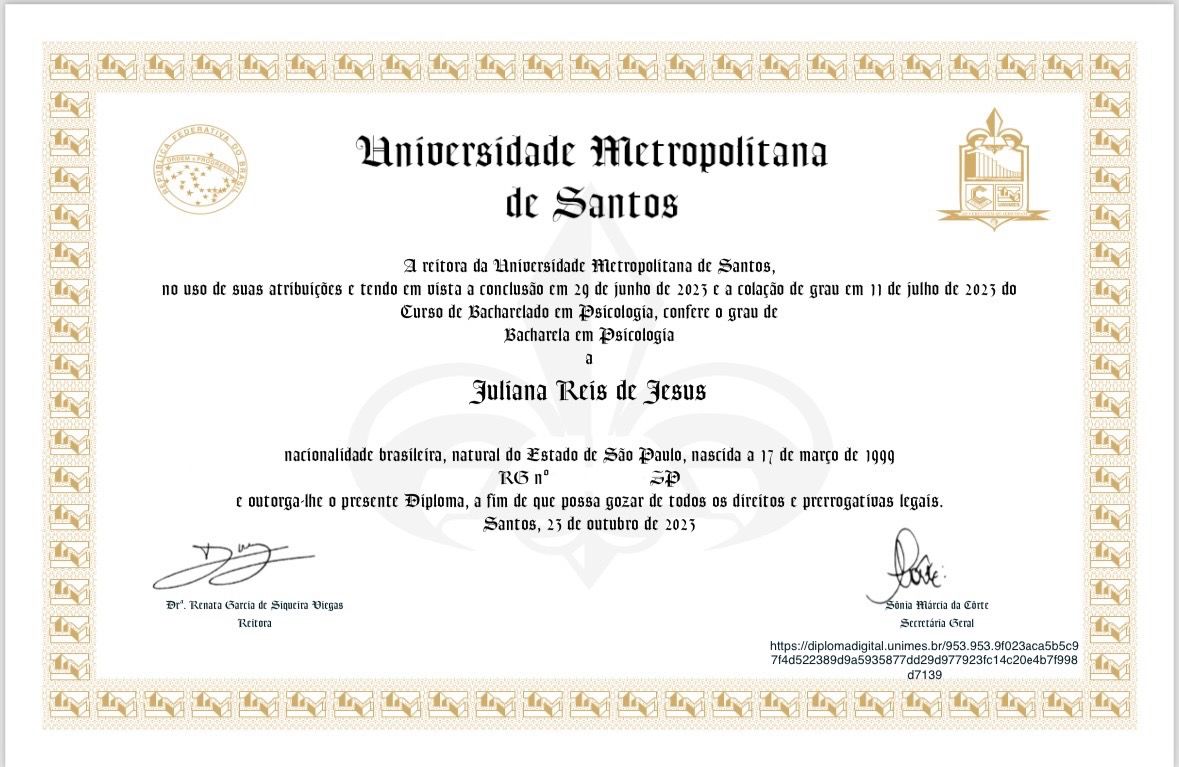 Sou psicóloga formada pela Universidade Metropolitana de Santos (Unimes) desde 2023 e atuo na abordagem da Terapia Cognitivo-Comportamental (TCC), uma metodologia que busca compreender e ressignificar pensamentos, emoções e comportamentos de maneira prática e eficaz. Acredito que o processo terapêutico é uma jornada conjunta, construída com empatia, escuta ativa e ética. Valorizo o acolhimento, o compromisso com o bem-estar do outro e o constante aprimoramento técnico e humano. Estou aqui para oferecer um espaço seguro, de confiança e transformação.