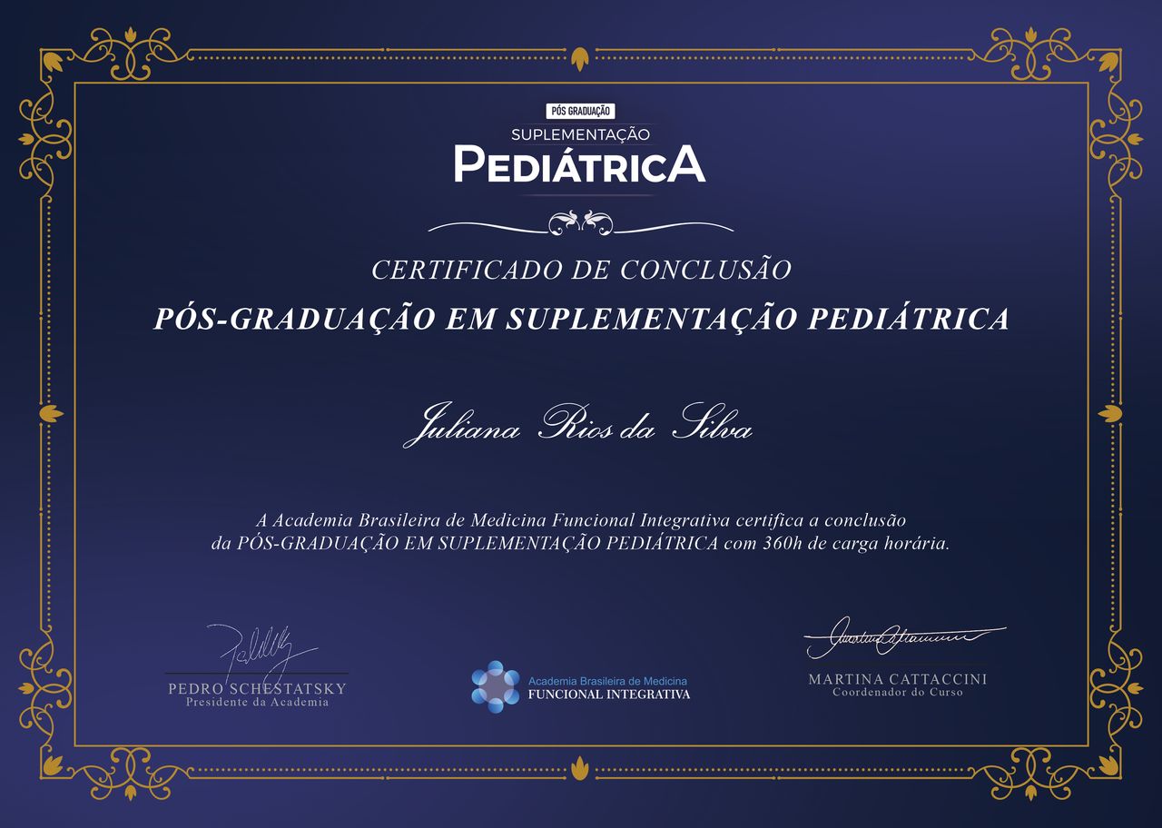 Pós graduada em Suplementação pediátrica funcional integrativa pela Academia Brasileira de Medicina Funcional Integrativa