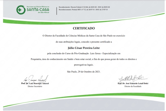 Pós Graduado em Psiquiatria pela Santa Casa-SP, Especializado em Cannabis Medicinal, pela FMUSP. Graduado em Medicina pela FCMSJF-MG. Atualmente, Residente em Neurologia no HMJCF-SP. Atendendo presencialmente em Ubatuba e por Telemedicina.