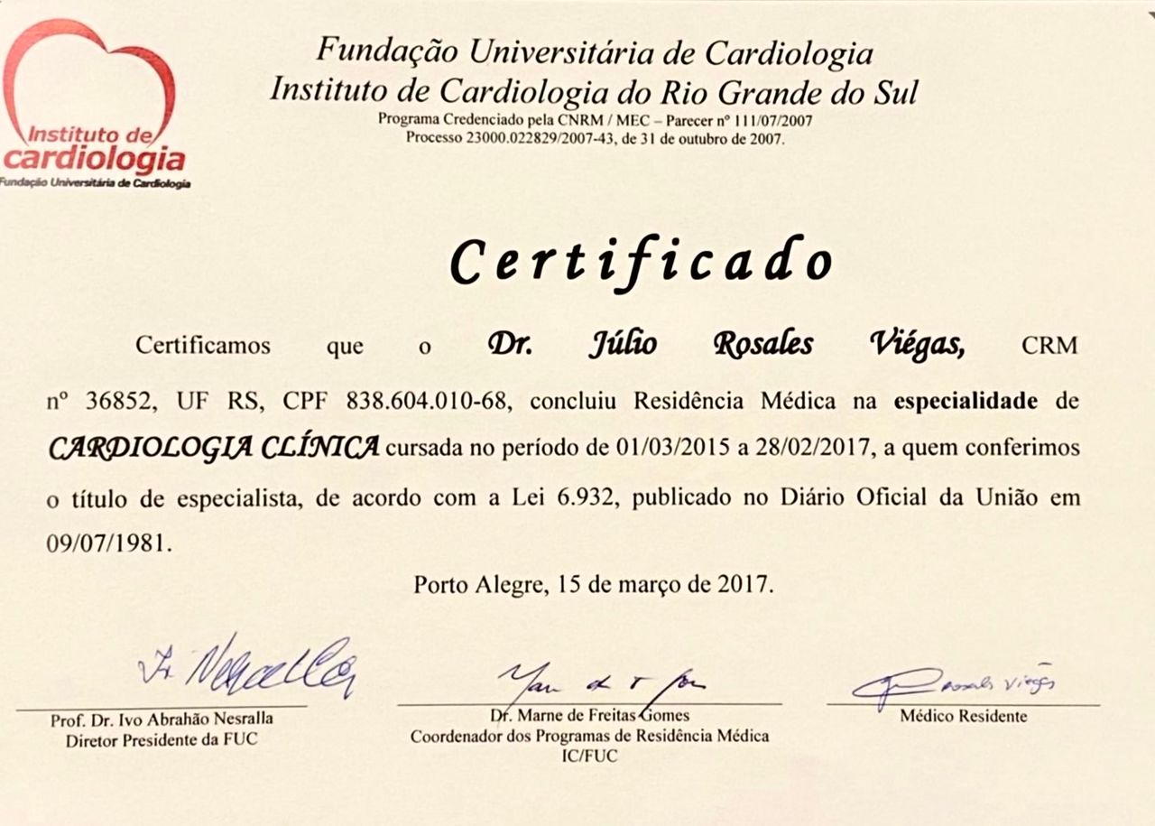 Quais são as principais especialidades de Júlio Rosales Viégas?Júlio Rosales Viégas é cardiologista. Te mostramos alguns dos serviços oferecidos pelo especialista graças à sua trajetória e vasta experiência: Primeira consulta Cardiologia, Teleconsulta.
