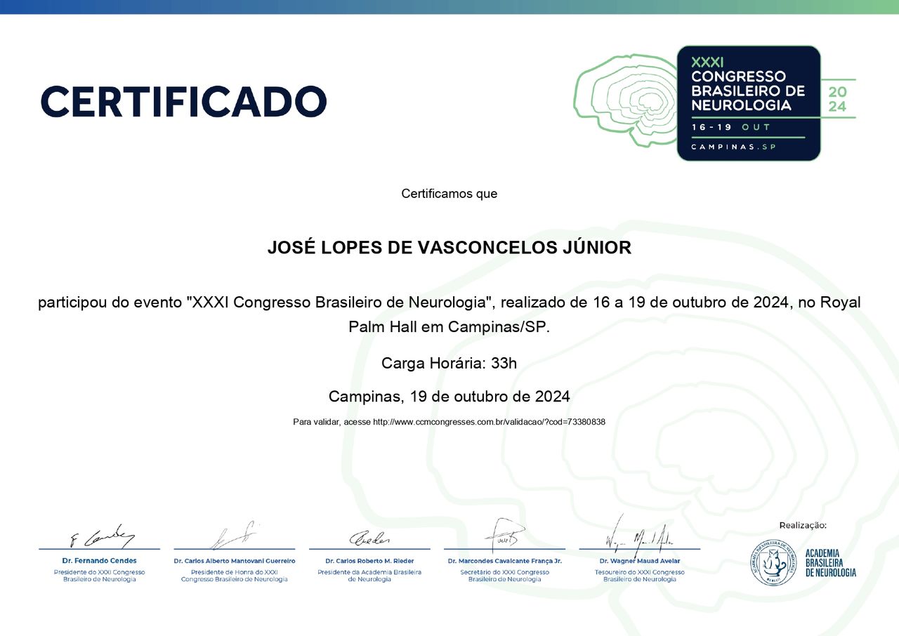 Sou formado em medicina pela Universidade Federal de Alagoas onde conclui minha graduação no ano de 2019. Me mudei para São Paulo para realizar minha especialização em neurologia no Hospital Santa Marcelina tendo concluído a mesma em 2024.