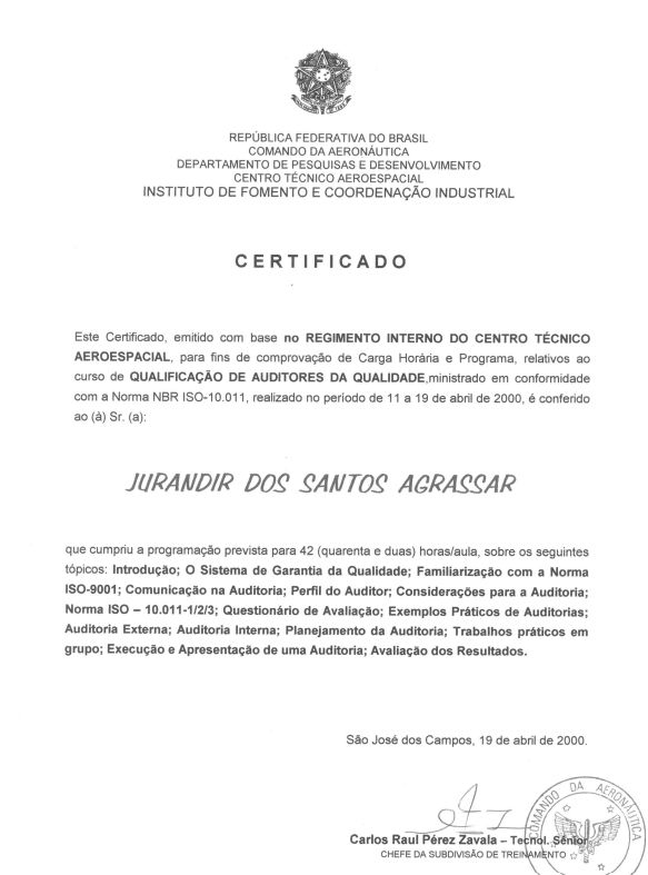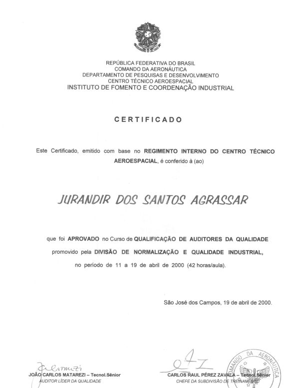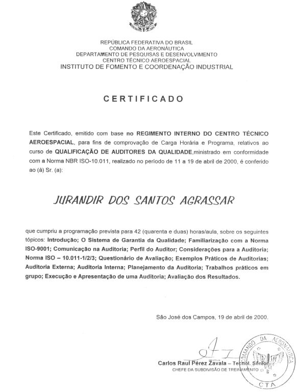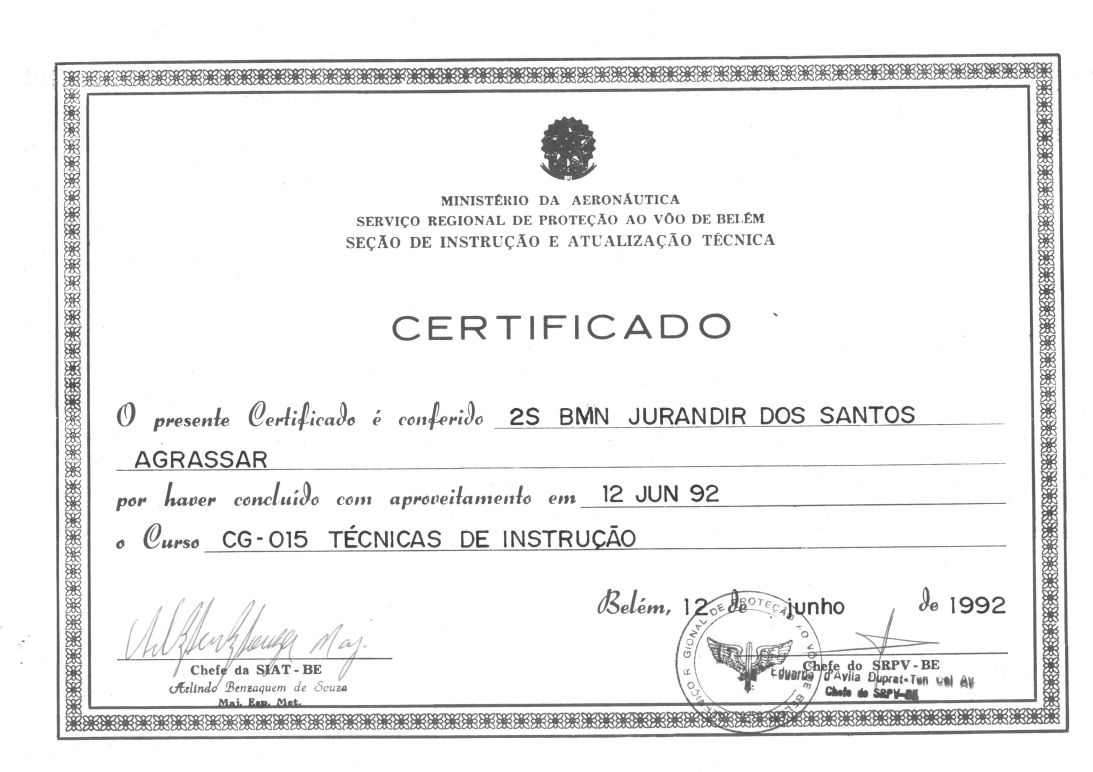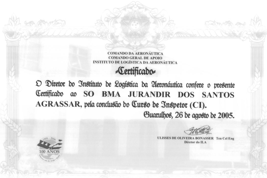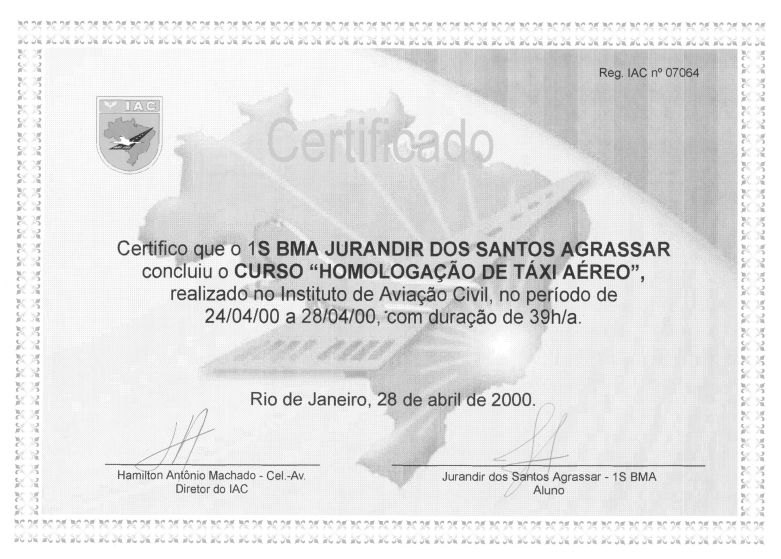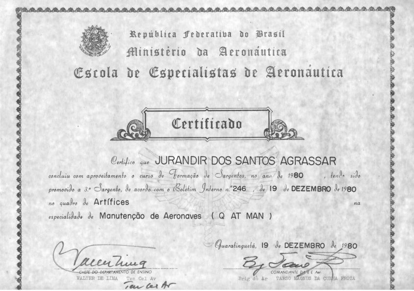 Formação diversas: Especialista da Aeronáutica; Inspetor e Auditor da Qualidade para a Aviação civil; Fatores humanos; congressos e workshop;