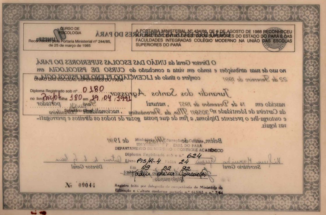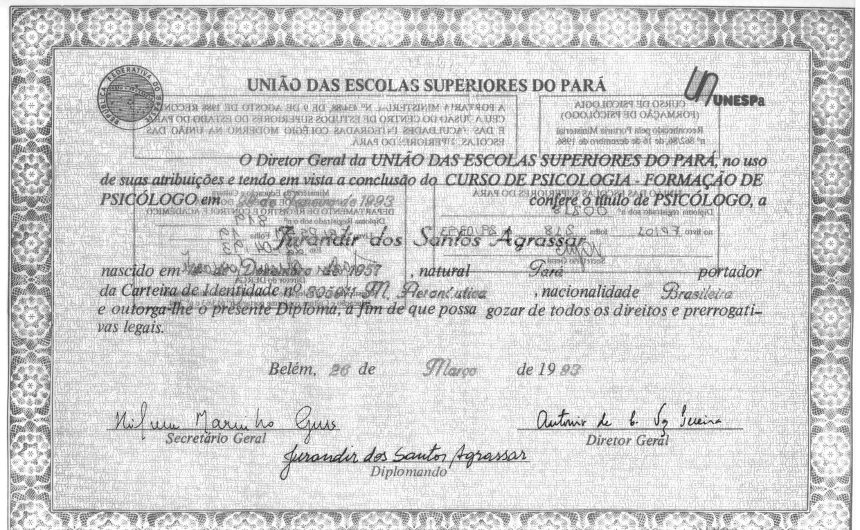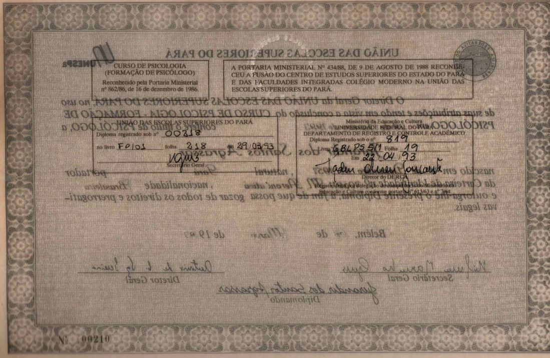 Licenciado em psicologia pela Unama (1991);