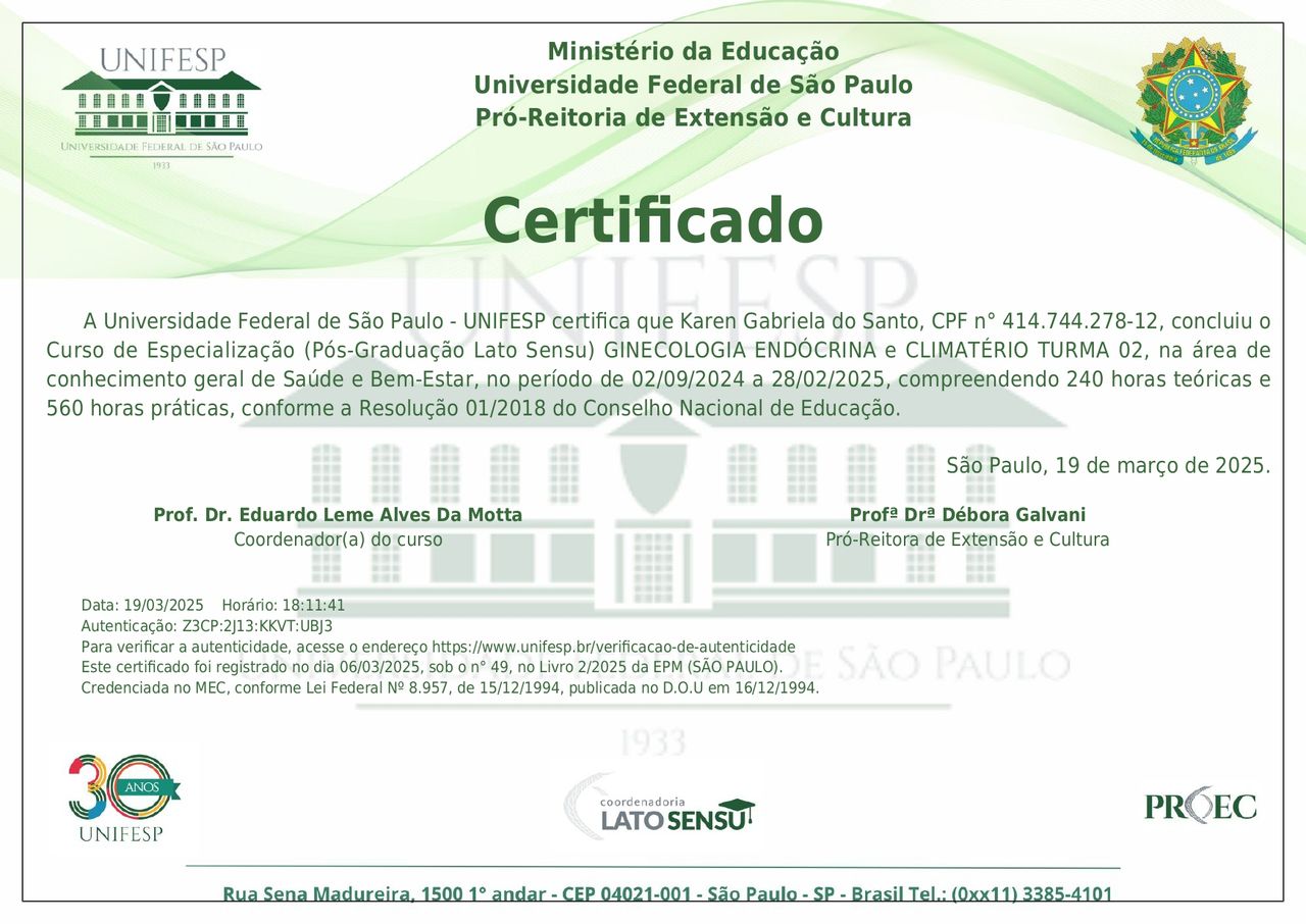 Formada em medicina pela tradicional faculdade de medicina de Taubaté, instituição com quase 60 anos de história. Residência de Ginecologia e Obstetrícia pelo programa SUS-SP no Hospital Estadual de Sapopemba, na zona leste de SP, o qual conta com alto fluxo de pacientes, gestações de alto risco e cerca de 300 partos por mês. Especialista em Ginecologia Endócrina e Climatério pela Unifesp, curso que também contempla as áreas de sexualidade e planejamento familiar. Após longa jornada de dedicação e estudos (que nunca param), posso dizer que sou apaixonada pelo que faço!