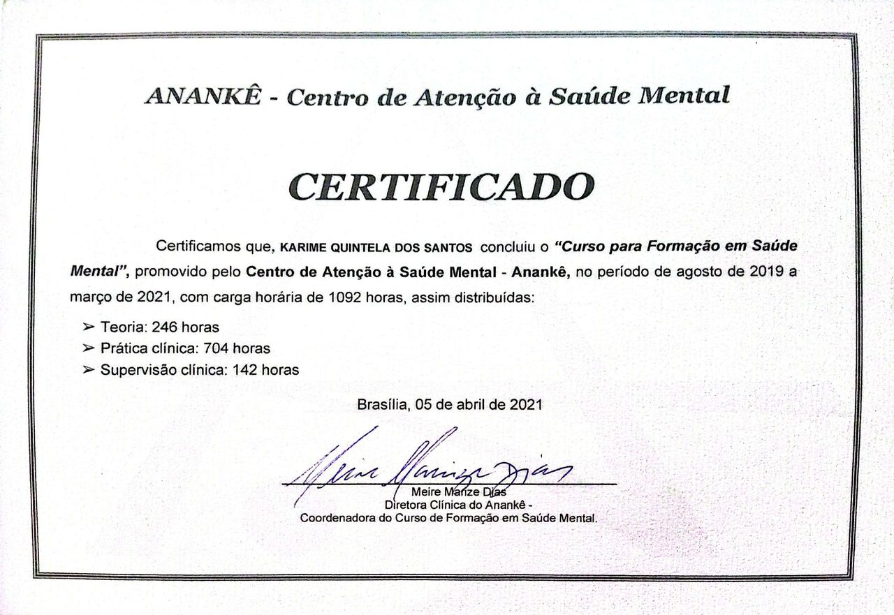A Karime é uma excelente profissional: tem uma escuta qualificada e humana, nos auxiliando no processo de autoconhecimento e na busca de formas para entendermos os processos que enfrentamos. Eu estou extremamente satisfeita com sua abordagem. Encontrei uma psicóloga atenciosa e que vem me ajudando a lidar com diversas situações desafiadoras que estou passando nesse momento. Recomendo!
