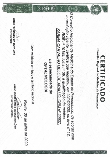 Número de registro: CRM - PE: 20537 RQE - PE: 10189