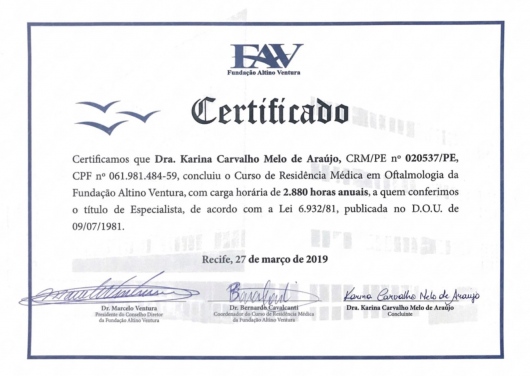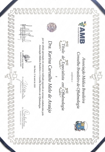 Quais são as principais especialidades de Karina Carvalho?Karina Carvalho é oftalmologista. Te mostramos alguns dos serviços oferecidos pelo especialista graças à sua trajetória e vasta experiência: Teste de visão, Tonometria, Retirada de corpo estranho da cornea, Cirurgia de catarata, Teste do Olhinho, Exame fundo de olho, Adaptação de Lente de Contato, Preenchimento facial com ácido hialurônico, Aplicação da toxina botulínica, Curva de Pressão Intraocular.
