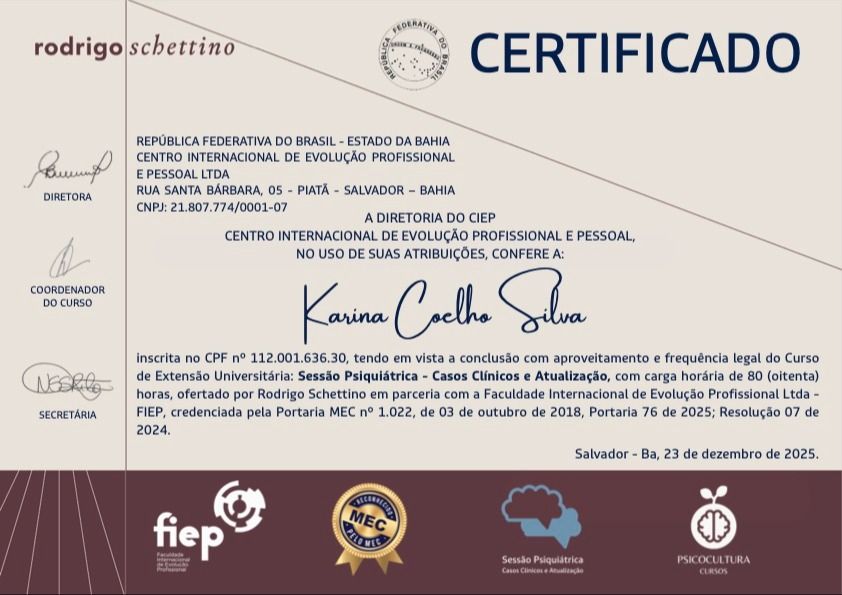 Enquanto isso, evite cafeína, excesso de telas à noite e pratique respiração lenta, pois isso pode ajudar a aliviar a ansiedade :). Não interrompa a medicação por conta própria. Caso os sintomas fiquem muito intensos ou atrapalhem demais o seu dia a dia, procure um profissional para avaliarmos juntos se será necessário algum ajuste. Espero ter ajudado! Bons dias e conte comigo :)