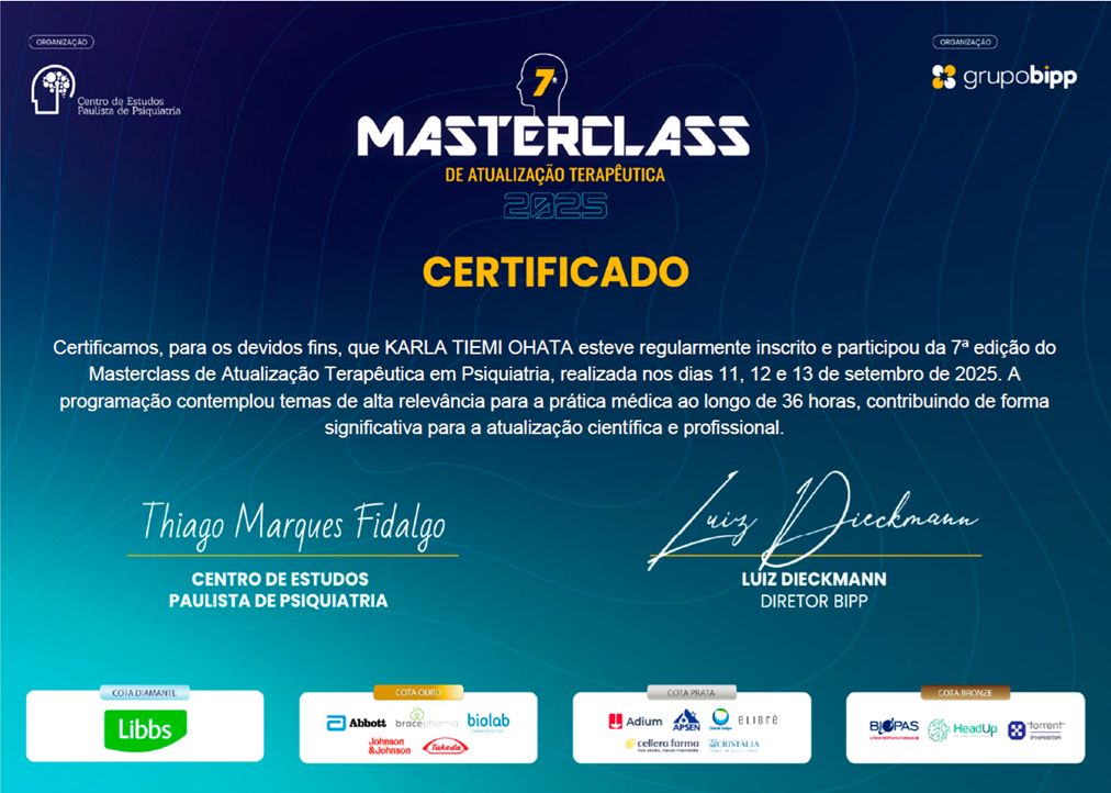 Psiquiatra voluntária em PROATA - UNIFESP, serviço multidisciplinar especializado em assistência a Transtornos Alimentares (2021- Atual) .