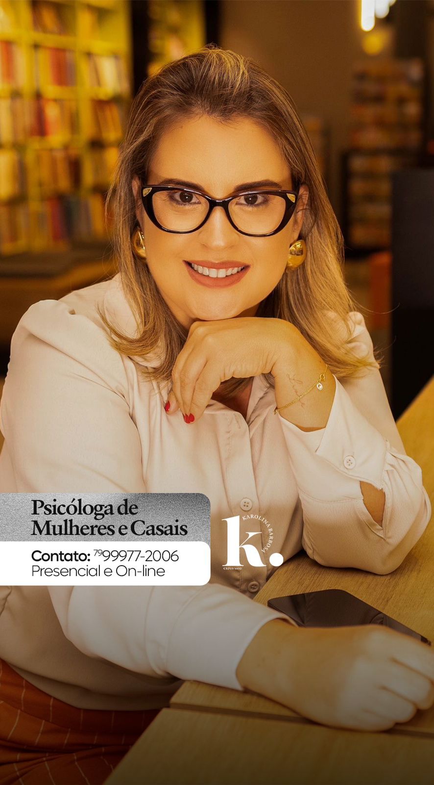 Sou Karolina Barbosa, Psicóloga Clínica especializada em cuidar de mulheres e casais em ansiedade, depressão ou outras doenças decorrentes ou não de uma separação e conflitos familiares, ajudar mulheres que vivem relacionamento abusivo, que perdeu sua identidade e quer viver a vida novamente. Minha missão é te ajudar a ter mais saúde e equilíbrio para viver feliz e com qualidade de vida.