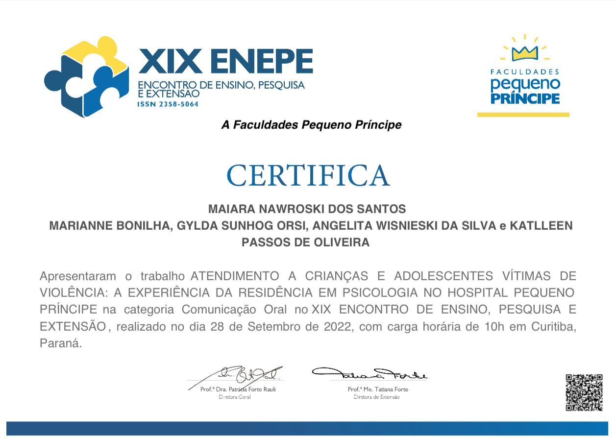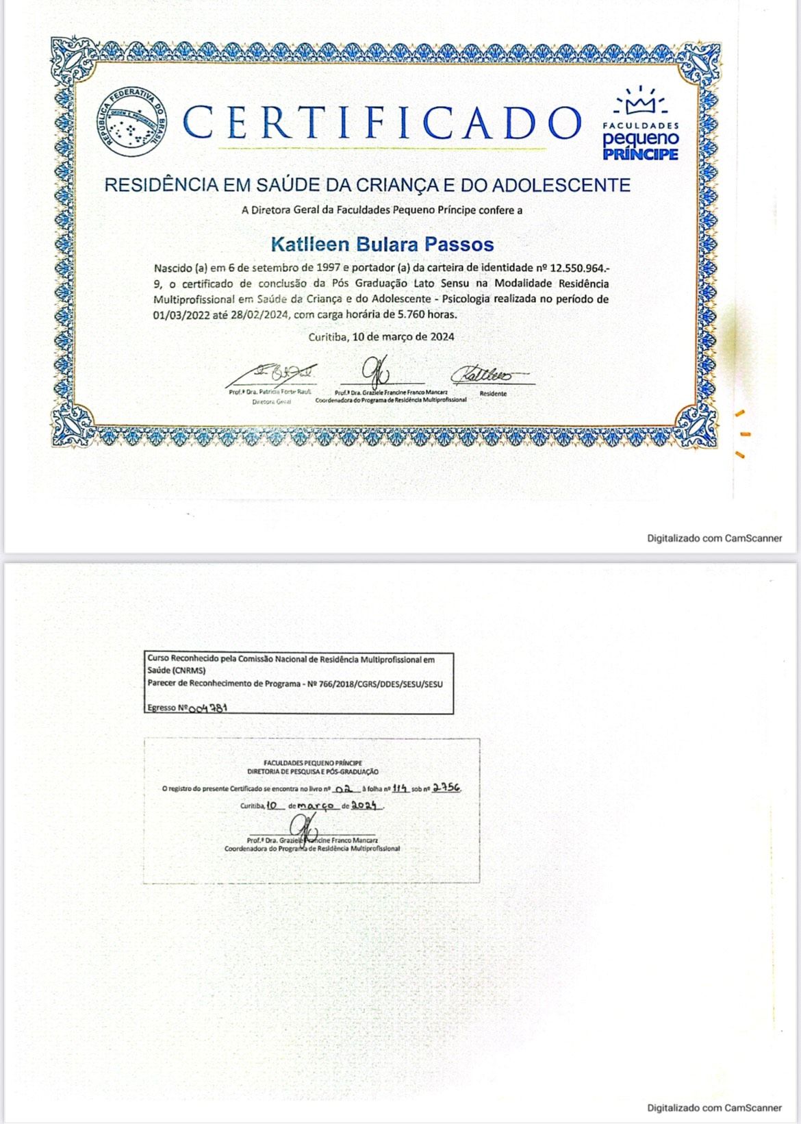 Sou psicóloga, formada pela Universidade Federal do Paraná. Com residência multiprofissional em campo no Hospital Pequeno Príncipe e Centros de Atenção Psicossocial (CAPS), formação em Terapia do esquema (IENH), pós graduação em Neuropsicologia clínica e em Terapia Cognitivo Comportamental. Possuo experiência na área hospitalar, clínica, psicossocial e de neuropsicologia.