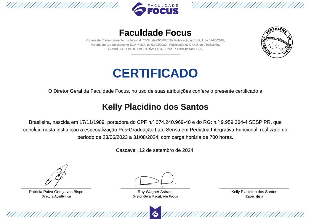 Sou a Dra. Kelly Placidino, médica certificada em Autismo pela Certificação Thiago Castro e com Formação em Transtornos do Neurodesenvolvimento pela Formação TND. Também sou Pós-graduada em Pediatria Integrativa e realizei curso de extensão em Suplementação Pediátrica Clínica. Meu trabalho é voltado para o diagnóstico e acompanhamento de Autismo, TDAH, TOD, ansiedade e depressão em crianças, adolescentes e adultos, com abordagem empática e acolhedora. Realizo uma avaliação diagnóstica detalhada, baseada em evidências científicas, questionários específicos e testes estruturados, analisando cada caso de forma individualizada. Ofereço suporte contínuo para que o paciente compreenda sua condição e tenha um plano de tratamento personalizado, adaptado à sua realidade. A avaliação diagnóstica contempla 2 consultas médicas com duração de uma hora cada (estão inclusas no custo da Investigação). Atendo pacientes através do teleatendimento, garantindo alto nível de aprofundamento e precisão diagnóstica.