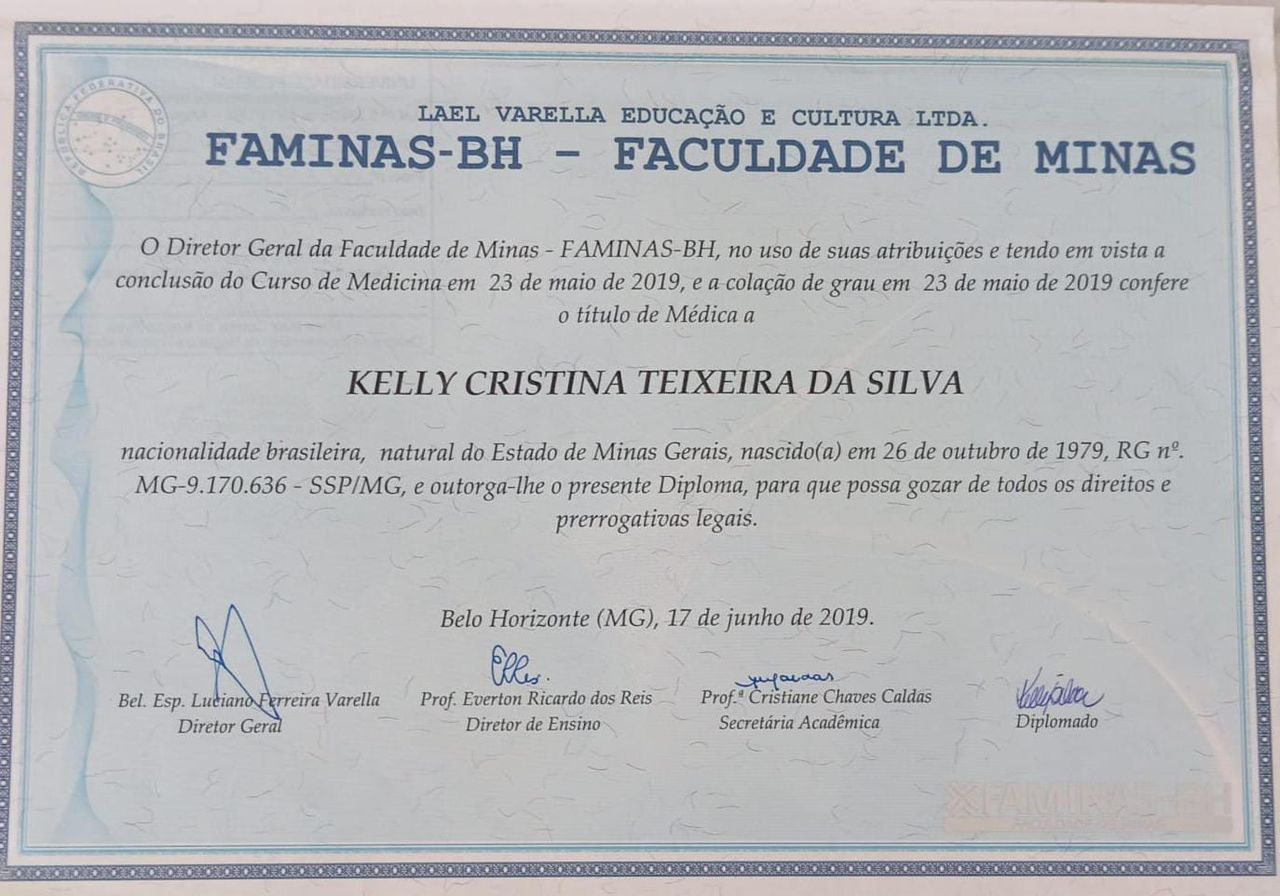 Mãe, médica e apaixonada pelo universo infantil. Divinopolitana e minha jornada começou na psicologia (UEMG) Divinópolis em 1999, passando por experiências da Psicologia Hospitalar (Hospital Mater Dei e Semper- BH) em 2006, especialização em Clínica Médica no CSSJD- Divinópolis. especialização em Pediatria pelo CAEEP de São Paulo. Tenho experiência em atendimento pediátrico há 6 anos nos principais hospitais de Divinópolis (Complexo de Saúde São João de Deus, Hospital Santa Mônica, Hospital Santa Lúcia e UPA Roberto Cordeiro). Em Santa Luzia (Hospital Madalena Calixto), UPA São Benedito-Santa Luzia, Lagoa Santa (Hospital Santa Casa Lindouro Avelar), Contagem (Centro Materno Infantil) e em Jaboticatubas (Fundação Hospitalar Santo Antônio).
