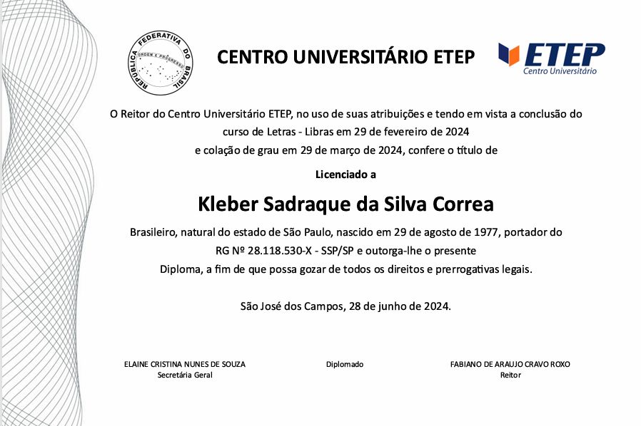 Em quais idiomas Kleber Sadraque da Silva Corrêa atende?Kleber Sadraque da Silva Corrêa atende em Libras, Inglês.