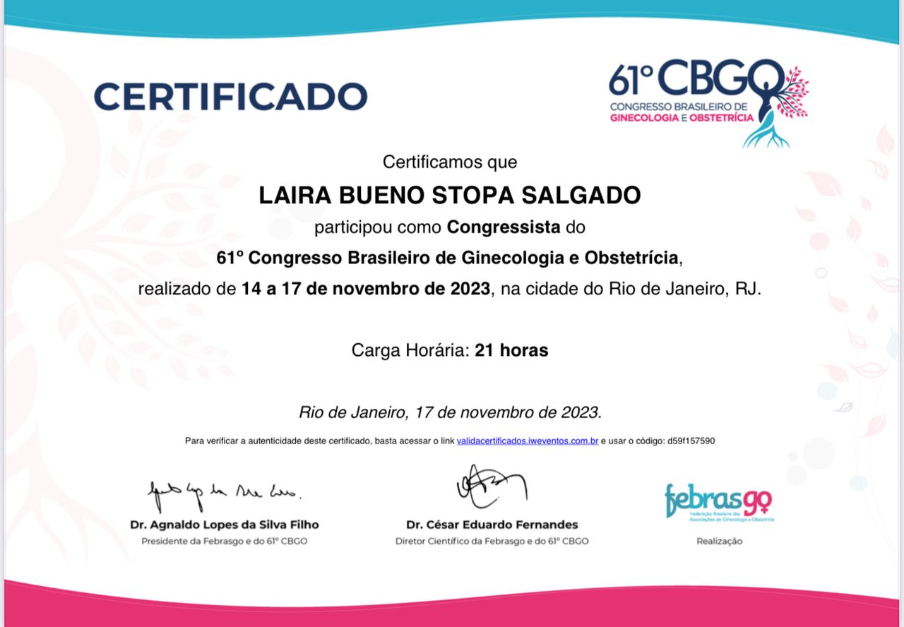 O que outros pacientes opinam sobre Laira Bueno Stopa Salgado?Um total de 13 pacientes já deixou uma opinião honesta e real sobre Laira Bueno Stopa Salgado, que tem uma avaliação média de 5 estrelas (de 5).