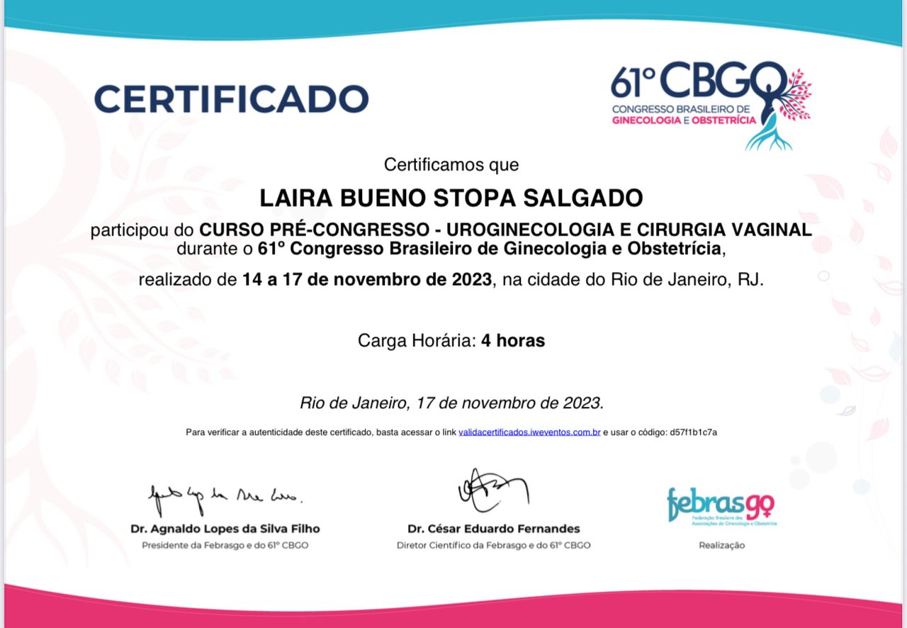 Quando poderia me consultar com Laira Bueno Stopa Salgado?Laira Bueno Stopa Salgado costuma ter horários disponíveis dentro da mesma semana ou para a semana seguinte. Verifique o calendário: você verá o primeiro horário disponível, atualizado em tempo real. Caso o horário sugerido não funcione para você, verifique outras datas. Agendar uma consulta é sempre imediato e gratuito.