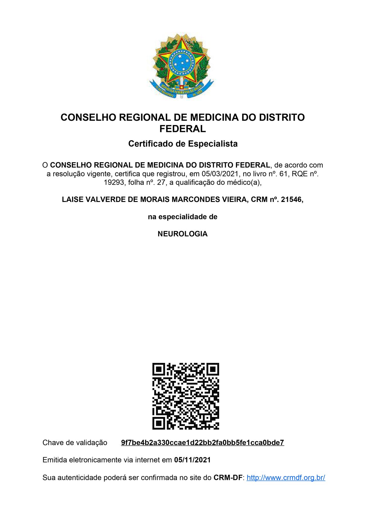 Número de registro: CRM DF 21546 RQE Nº: 19293