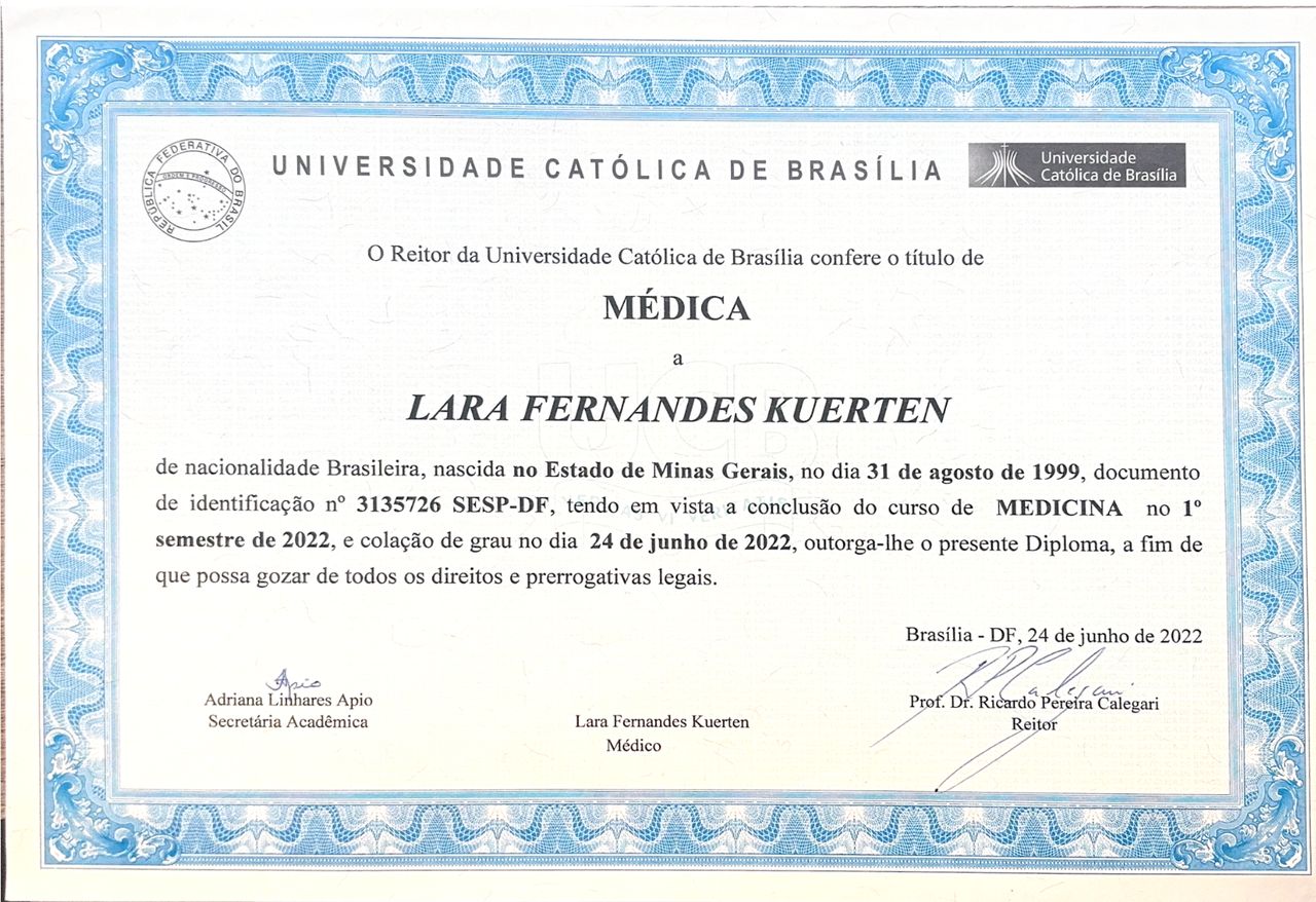 Doutora Lara, quero agradecer de coração pelo excelente atendimento e por toda atenção que teve comigo. Seu cuidado, dedicação e carinho fizeram toda a diferença.Bom encontrar uma profissional tão humana, atenciosa e comprometida com o bem-estar dos pacientes. Sua forma de atender transmite segurança e acolhimento, e isso me deixou muito tranquila. Sou imensamente grata por tudo!