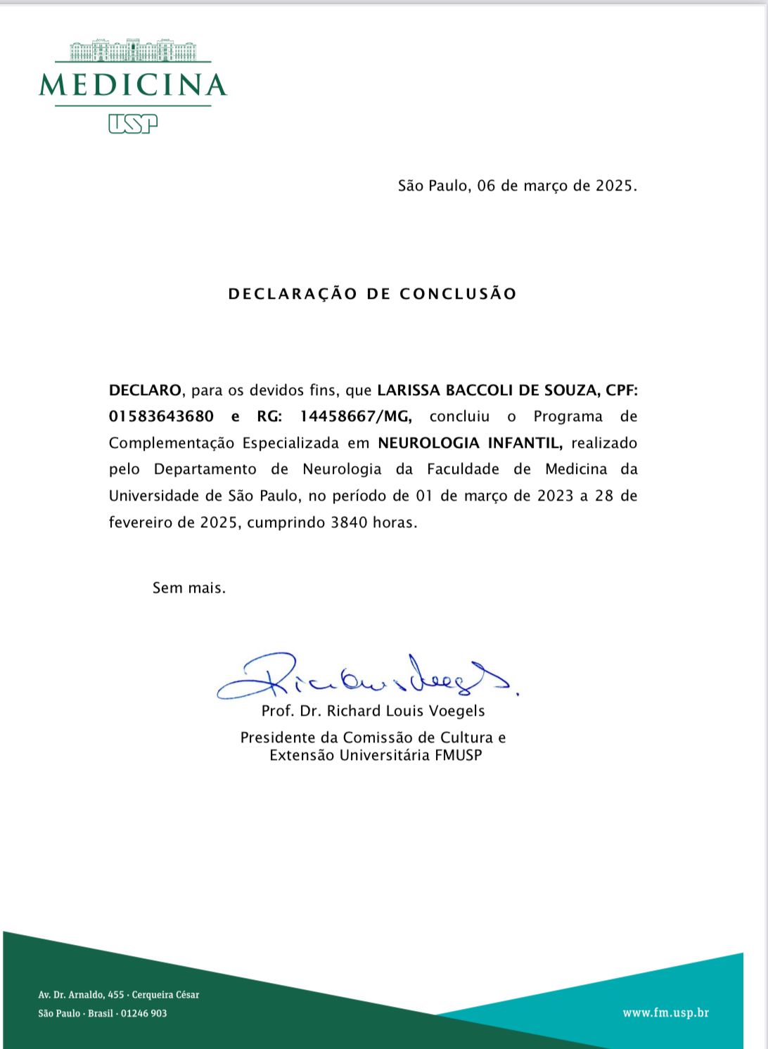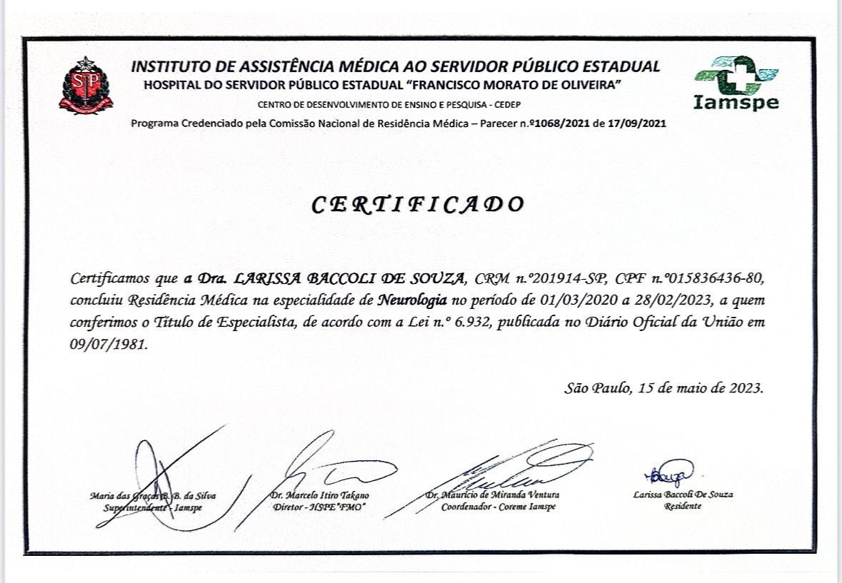 Posteriormente, aprofundei minha atuação na área que sempre me encantou: a Neurologia. Realizei minha residência médica no Instituto de Assistência Médica ao Servidor Público Estadual de São Paulo (IAMSPE) e, em busca de aprofundamento técnico e científico, especializei-me em Neurologia Infantil pela USP.