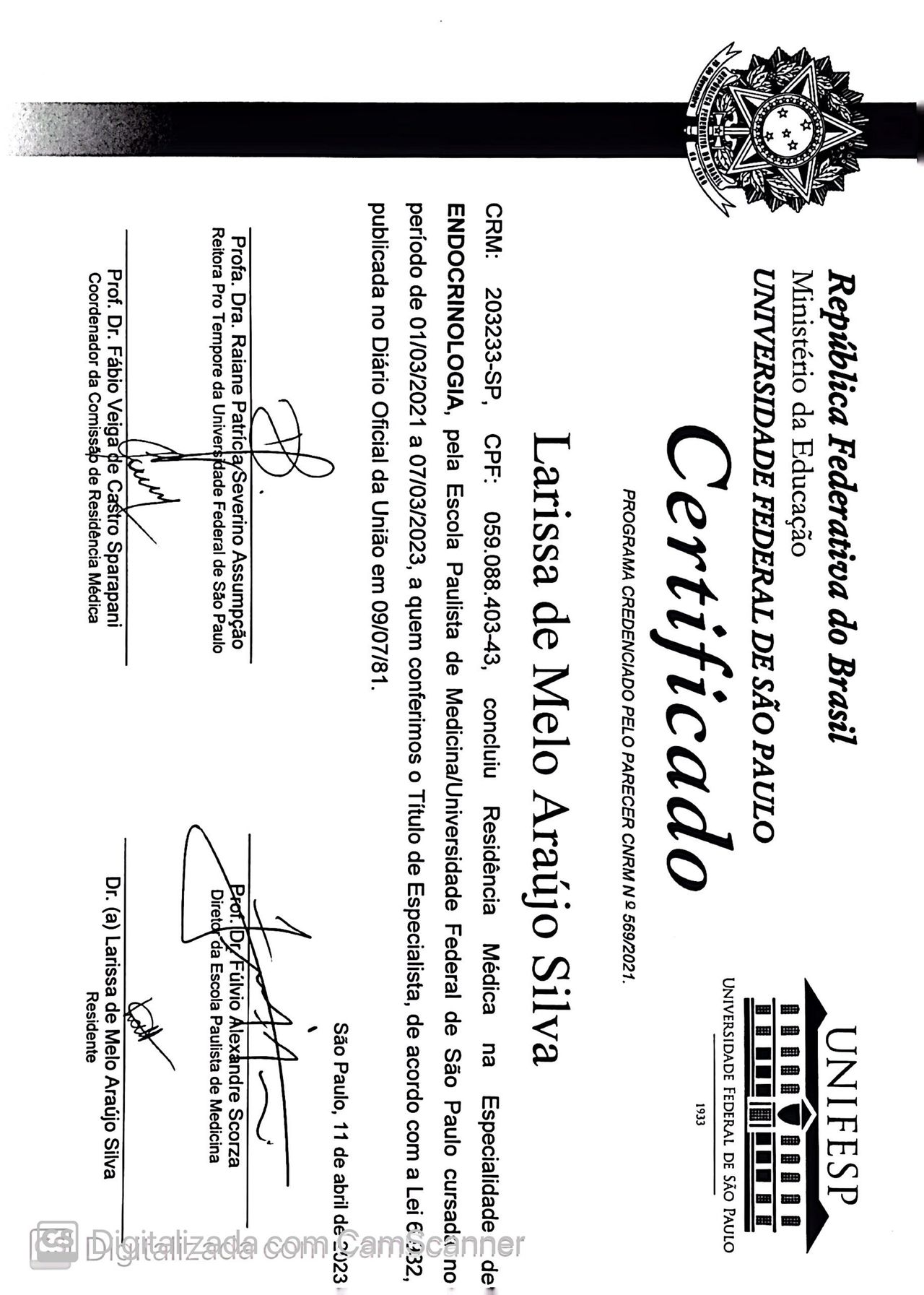 Quais são as principais especialidades de Larissa Melo?Larissa Melo é endocrinologista. Te mostramos alguns dos serviços oferecidos pelo especialista graças à sua trajetória e vasta experiência: Teleconsulta, Primeira consulta Endocrinologia e Metabologia, Consulta Endocrinologia e Metabologia.