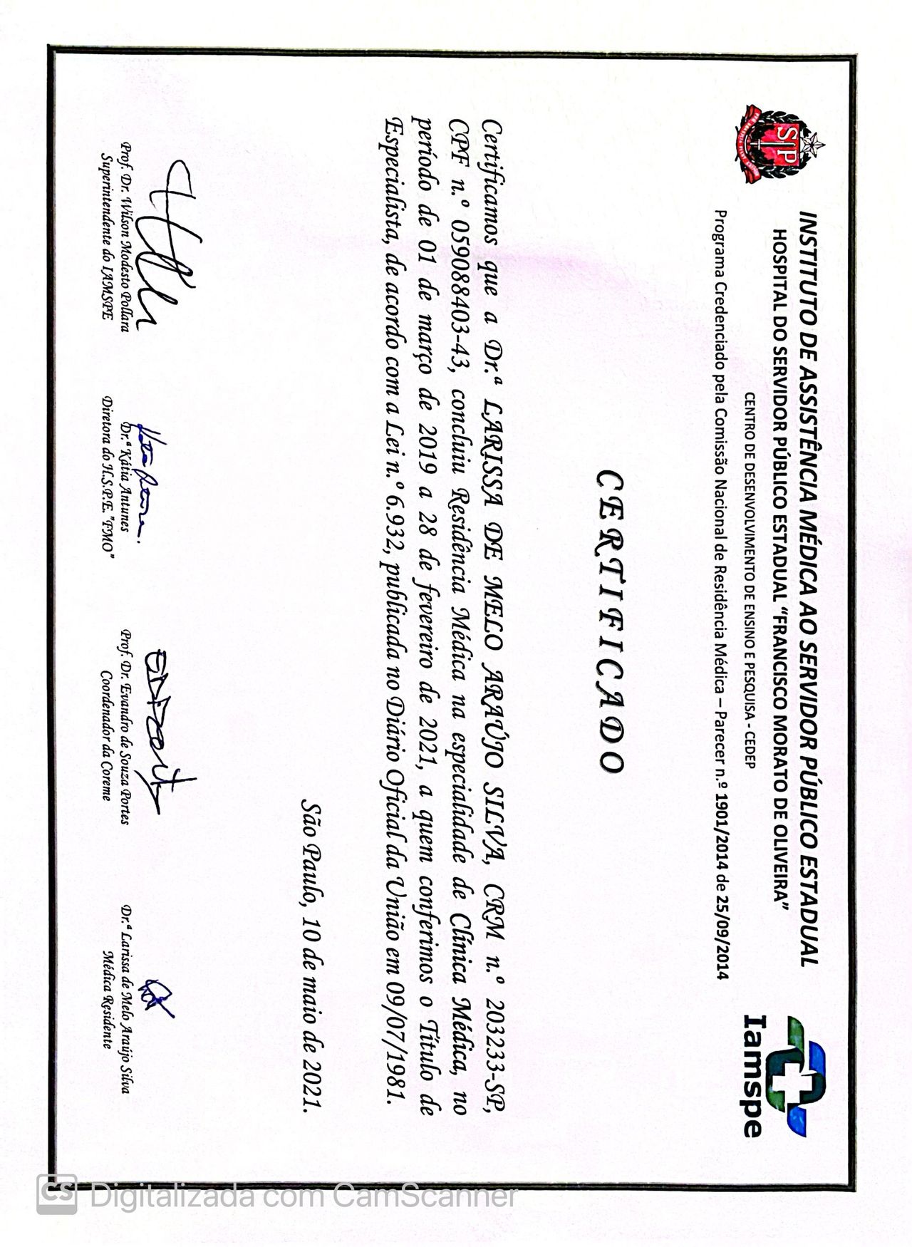 Foi a primeira consulta com a dra Larissa, que foi atenciosa e solicitou os exames necessários para avaliação