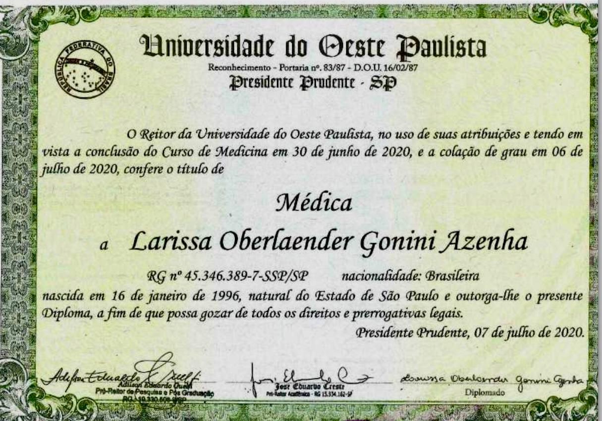 Médica pela Universidade do Oeste Paulista.