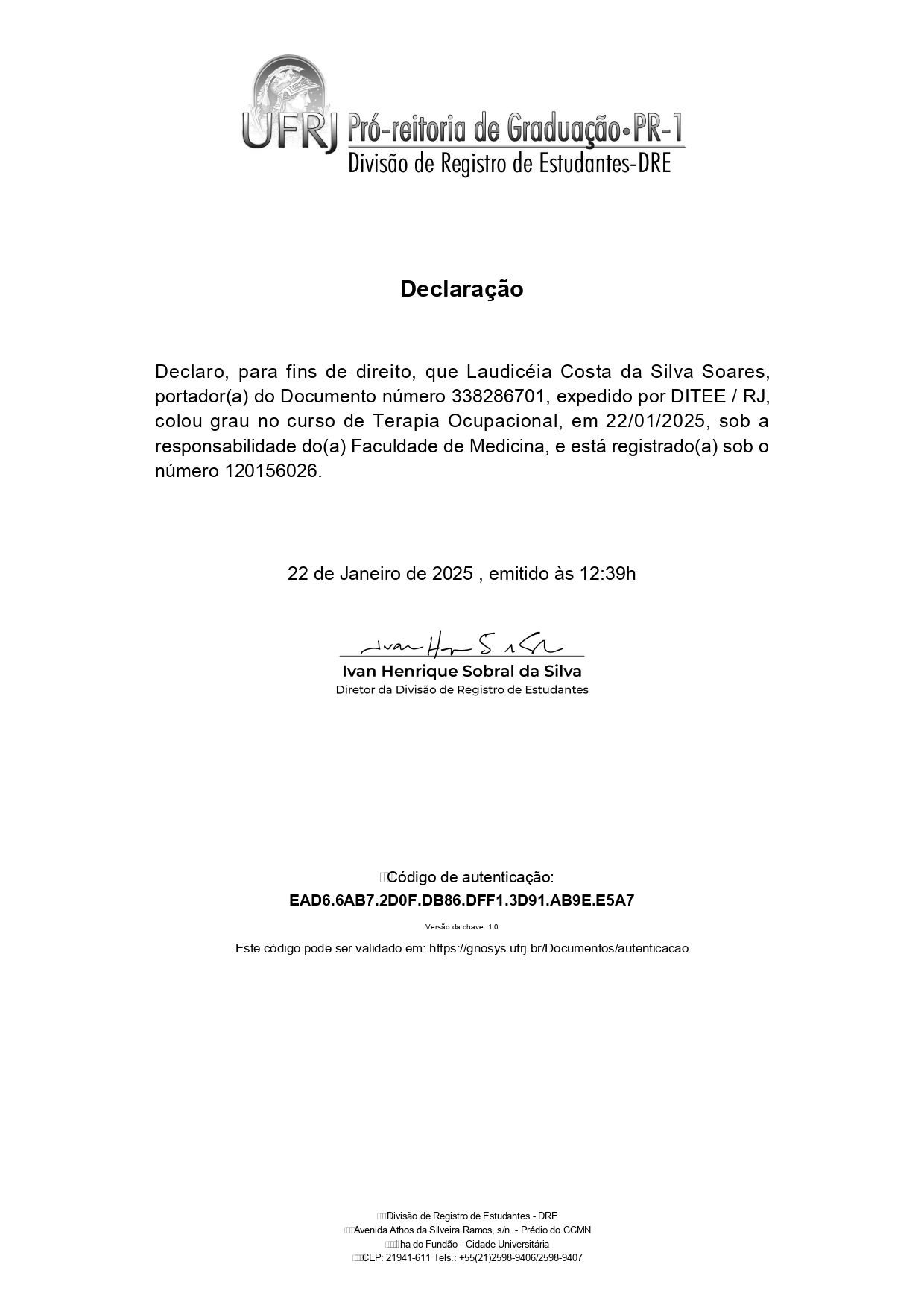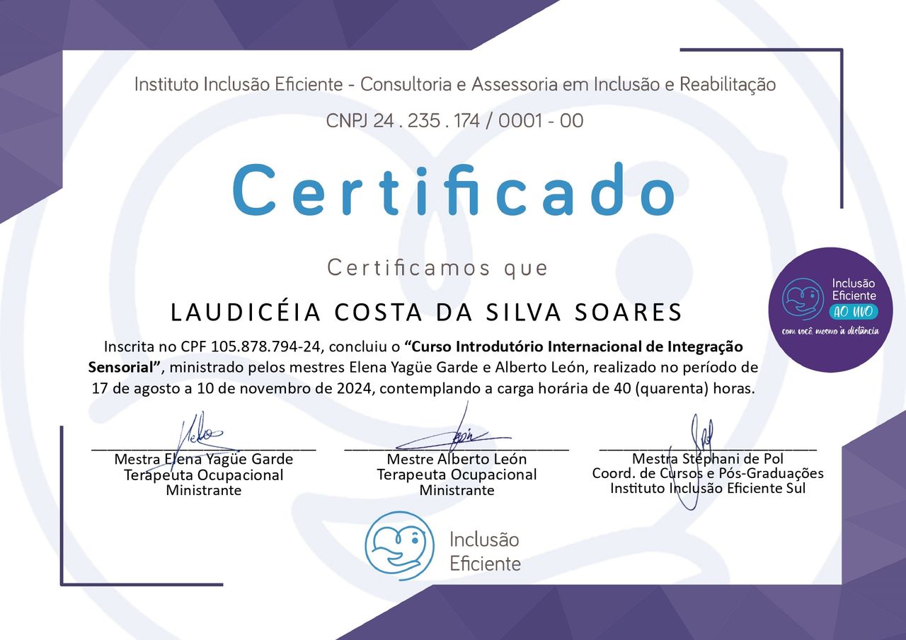 Quais são as principais especialidades de Laudicéia Costa da Silva Soares ?Laudicéia Costa da Silva Soares é terapeuta ocupacional. Te mostramos alguns dos serviços oferecidos pelo especialista graças à sua trajetória e vasta experiência: Terapia ocupacional com integração sensorial, Atendimento para TEA e TDAH (infantil).