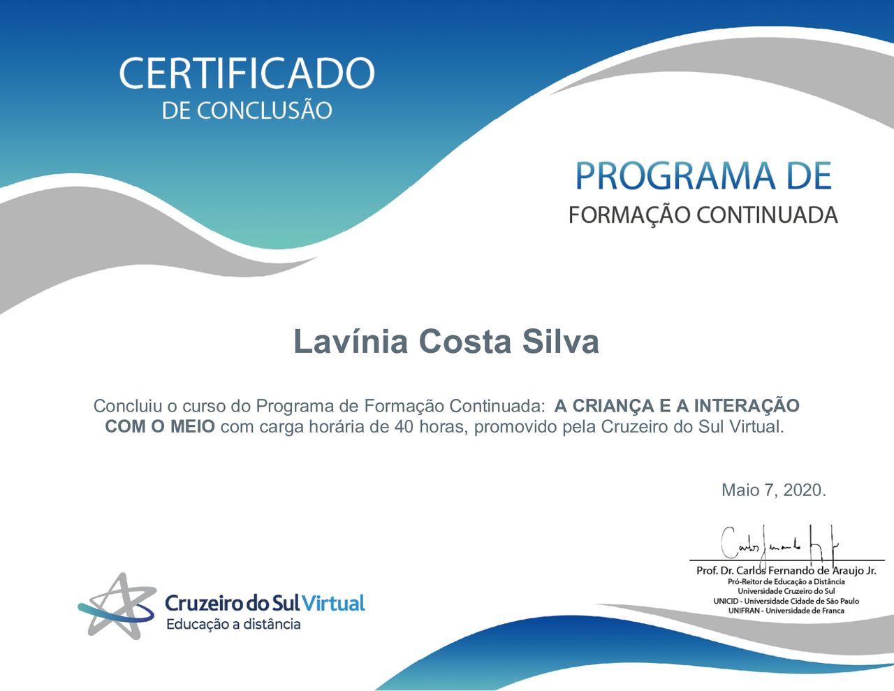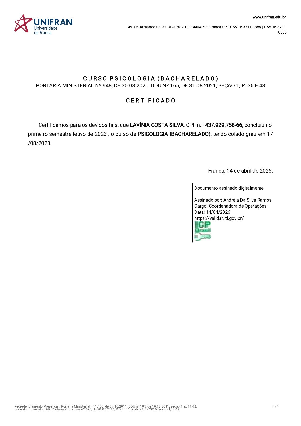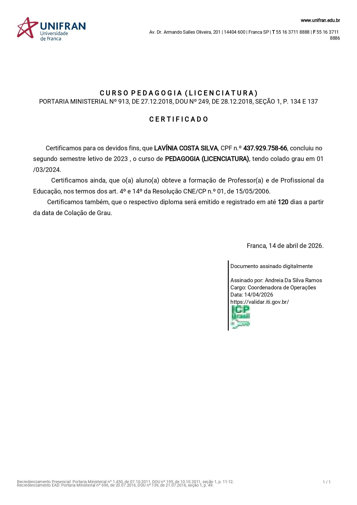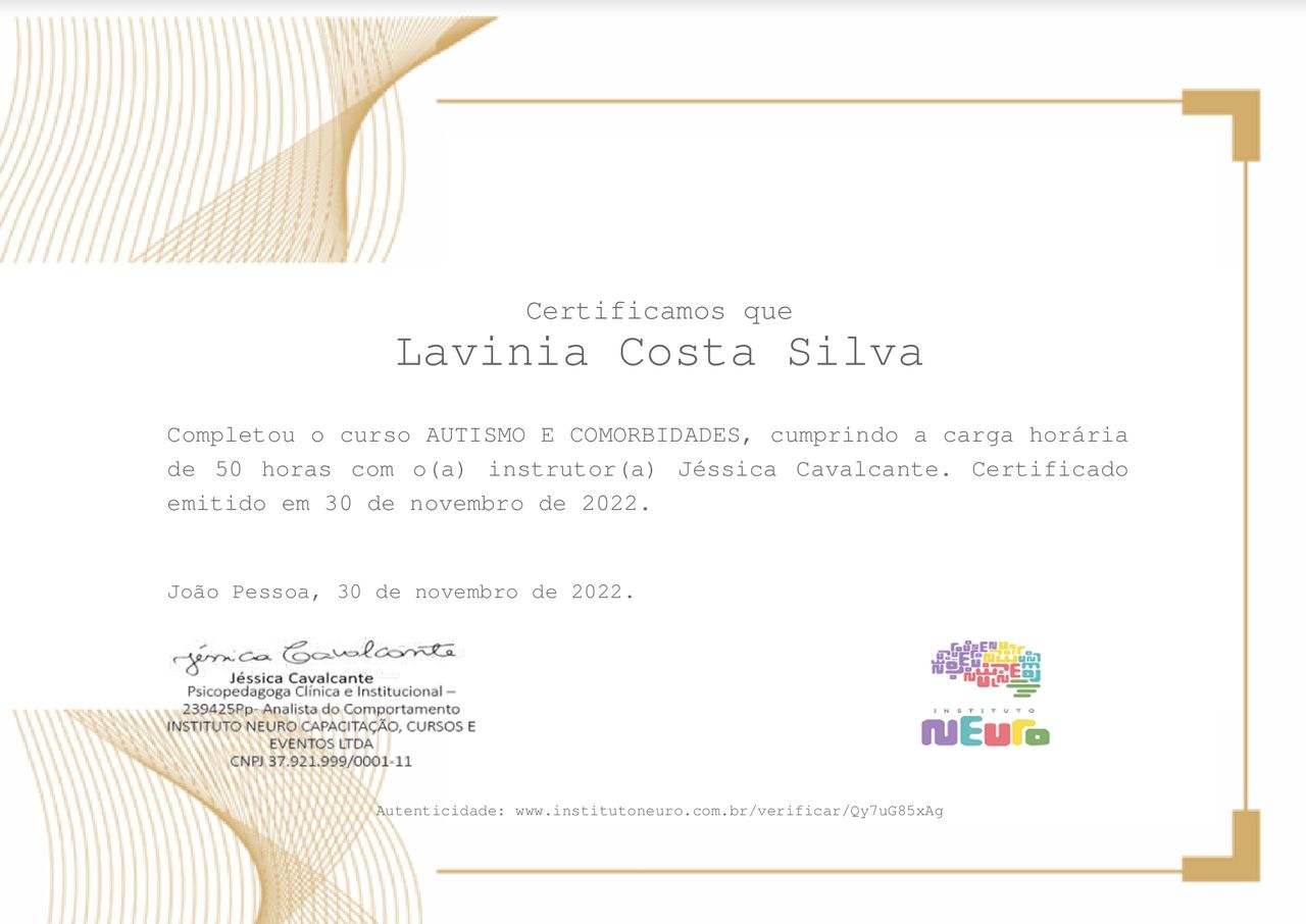Prazer, eu sou Lavínia Silva, tenho 26 anos e sou graduada em Psicologia e Pedagogia. Atualmente, estou finalizando duas pós-graduações: uma em Educação Especial e outra em Psicopedagogia.