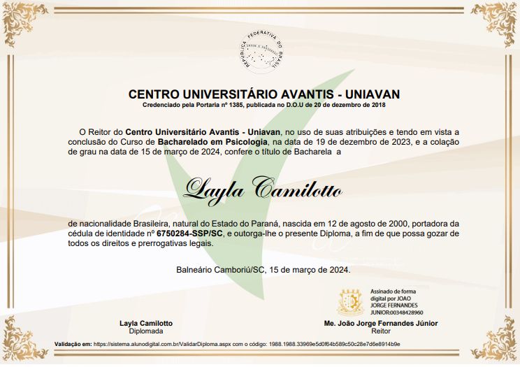 Sou Layla Camilotto, Psicóloga Clínica, pós graduada em Psicopatologia e Terapia Cognitivo Comportamental (TCC), abordagem com a qual exerço minha prática diária de trabalho.